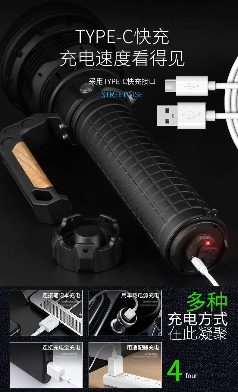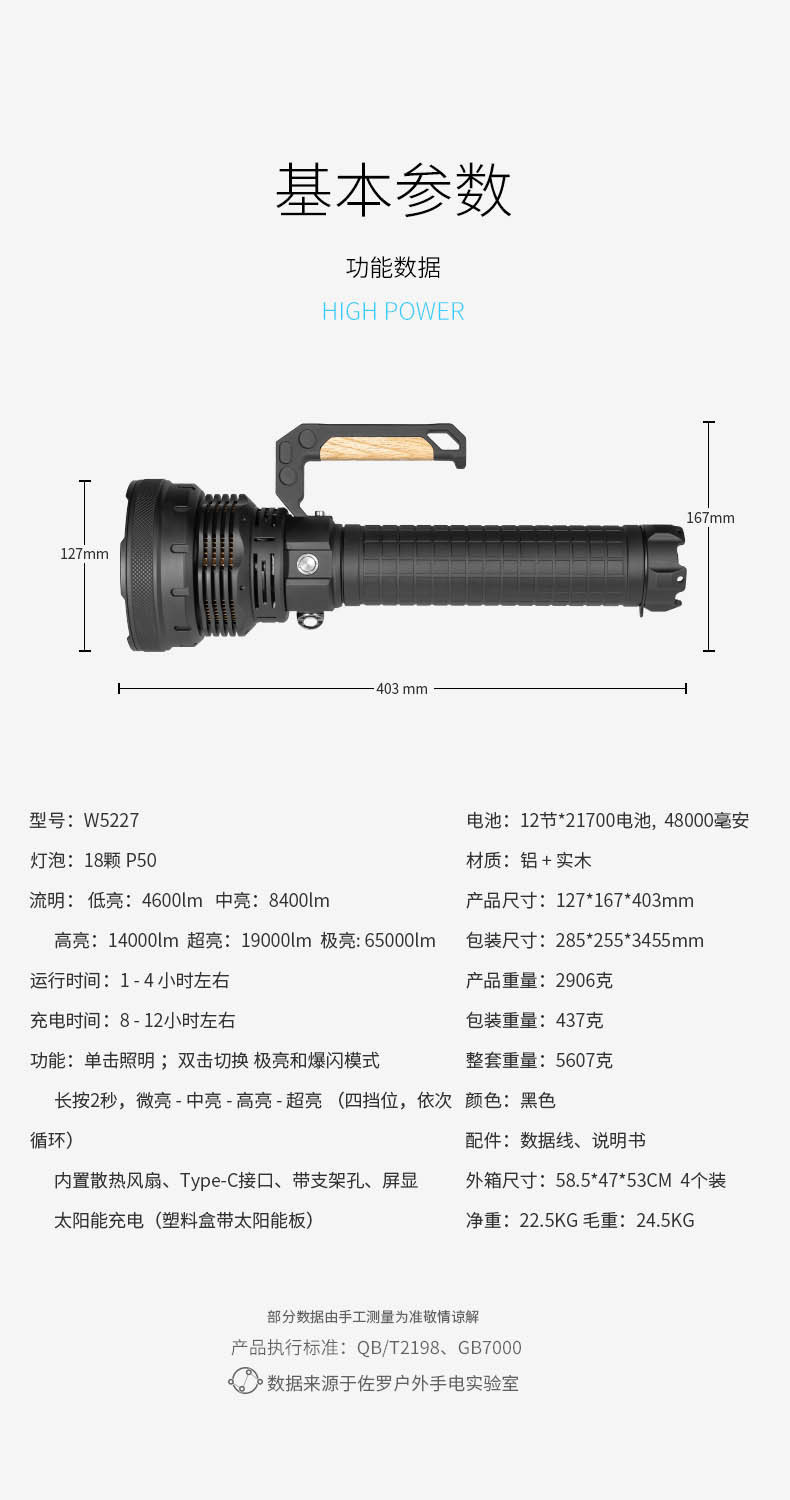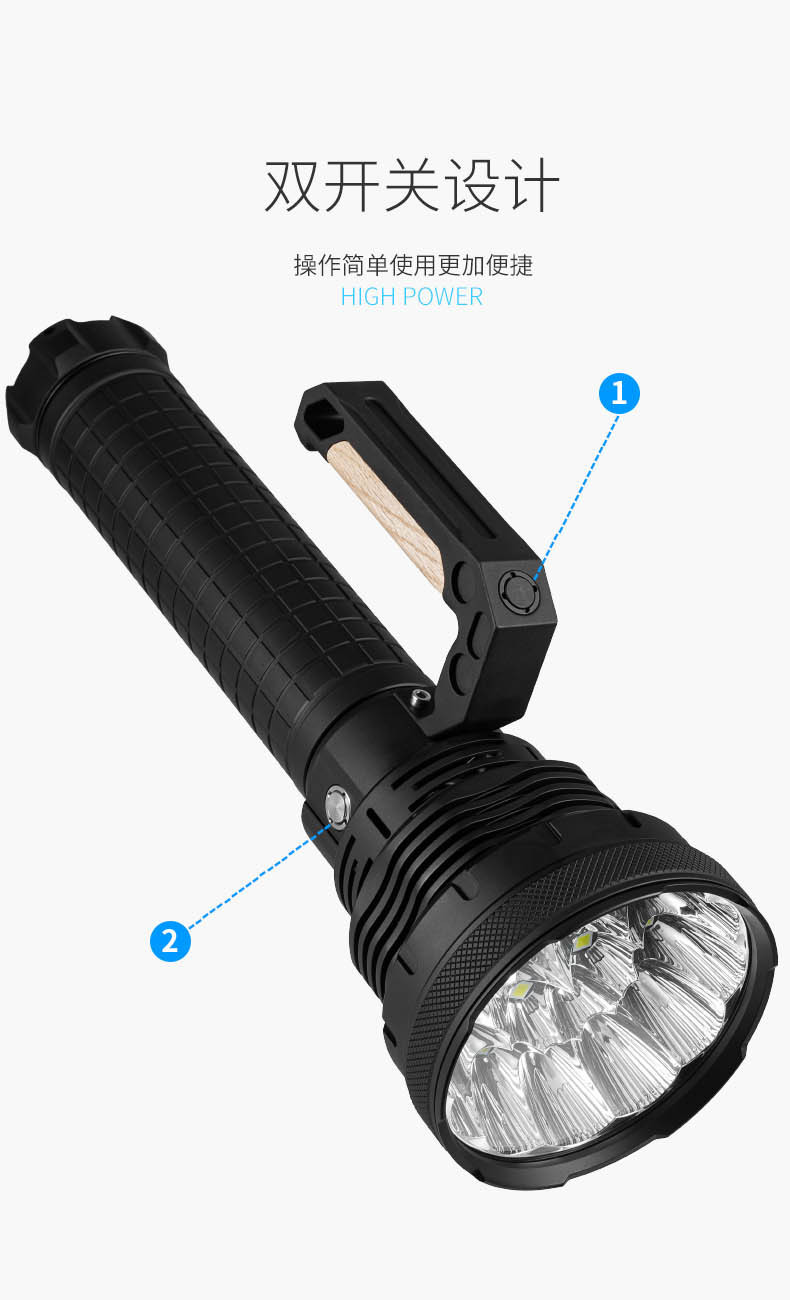 跨境新款高亮手提灯大功率18灯芯风扇强制散热冲天炮巡逻探照灯