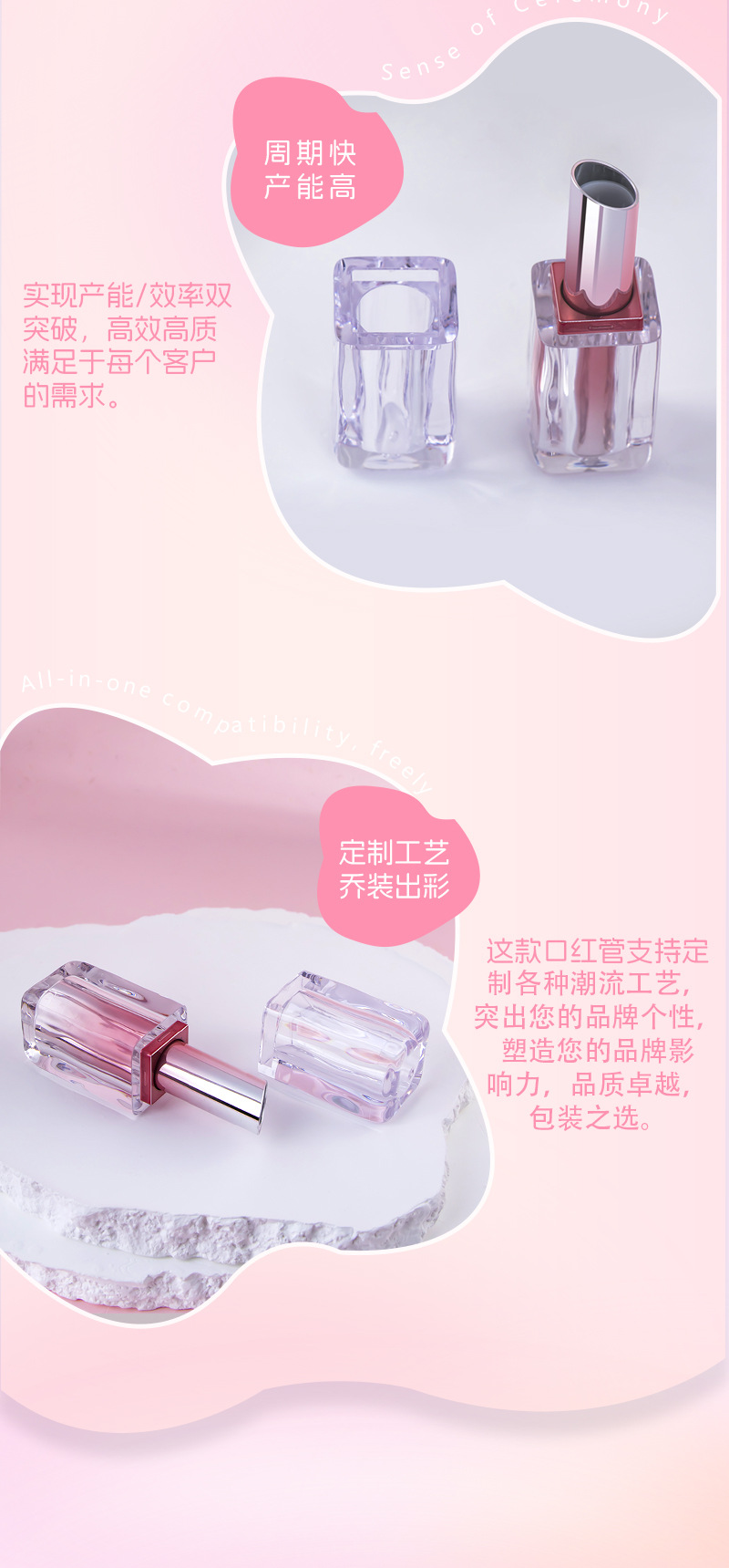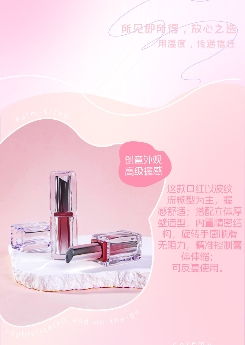 推荐理由:新款波纹口红管3.8g唇蜜润唇口红管喷镀渐变卡扣式倒灌彩妆包材