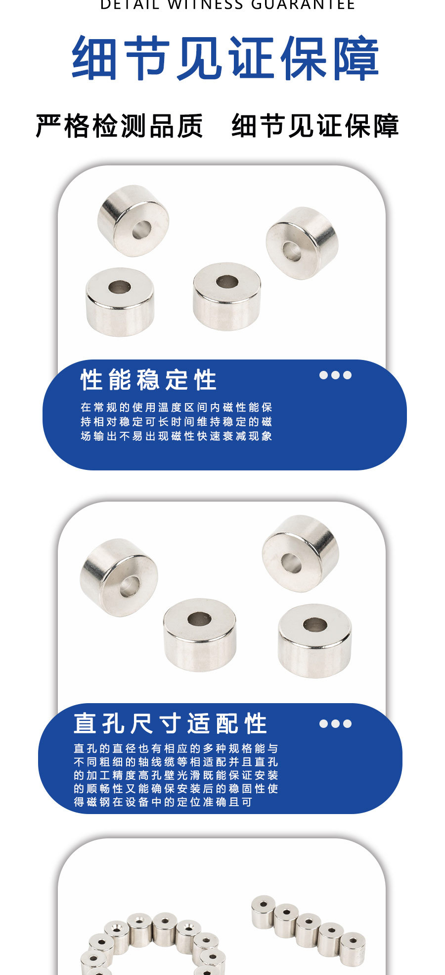 强磁磁铁圆柱直孔形强磁磁铁石超强钕铁硼圆形磁钢强力磁性贴片