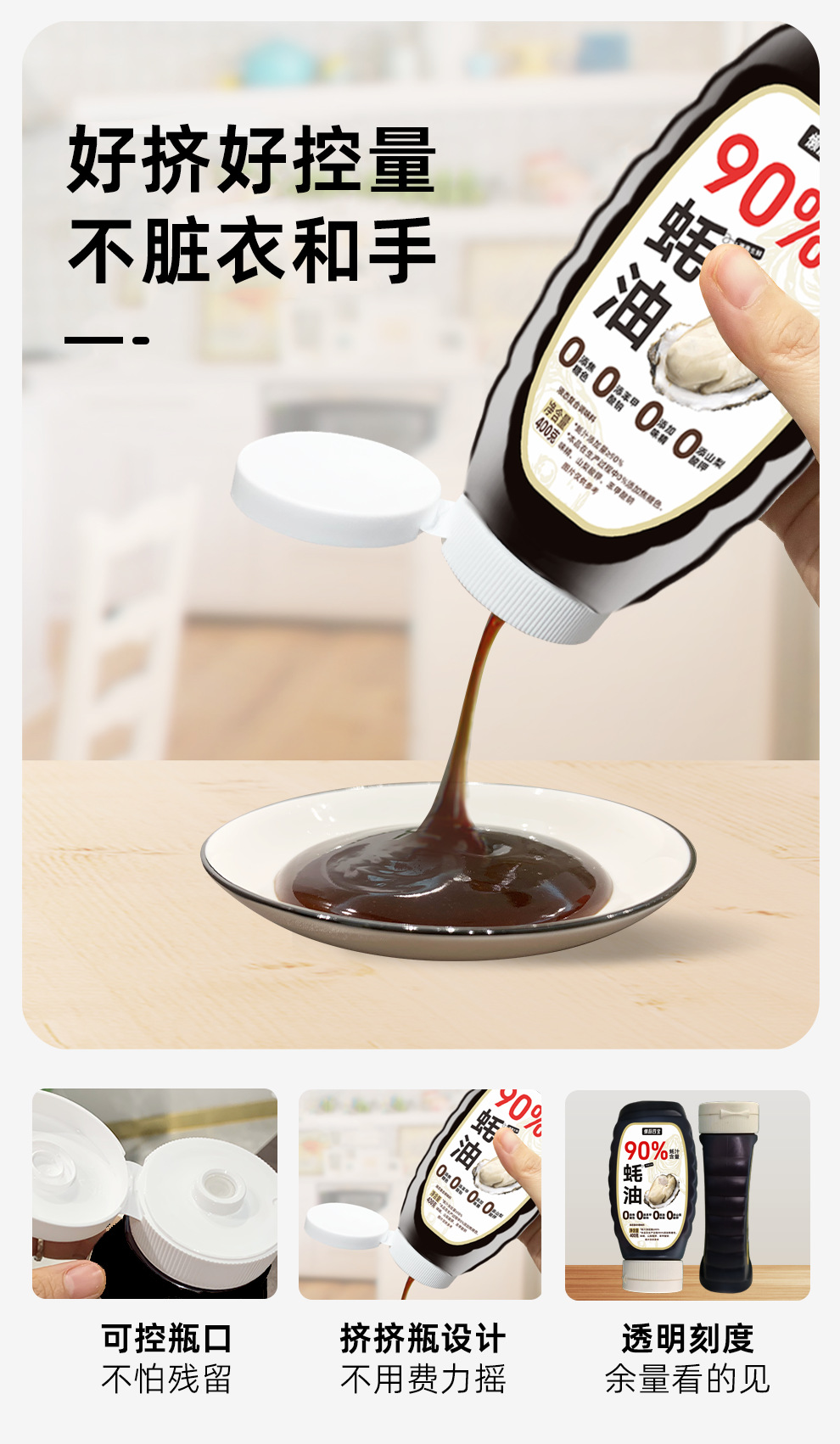90%蚝汁蚝油0添加香精味精防腐剂400g炒菜做饭煲汤提鲜家用调味品