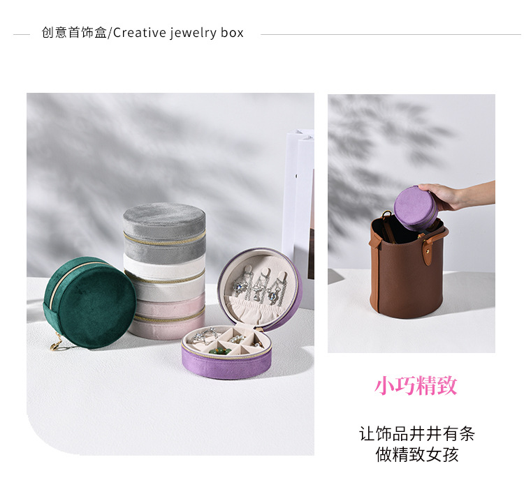 圆形首饰收纳盒旅行便携式丝绒耳环包装首饰盒 ins小巧珠宝礼品盒,批发价,价格:7.9,厂家直销,圆形首饰收纳盒旅行便携式丝绒耳环包装首饰盒 ins小巧珠宝礼品盒,免费拿样。