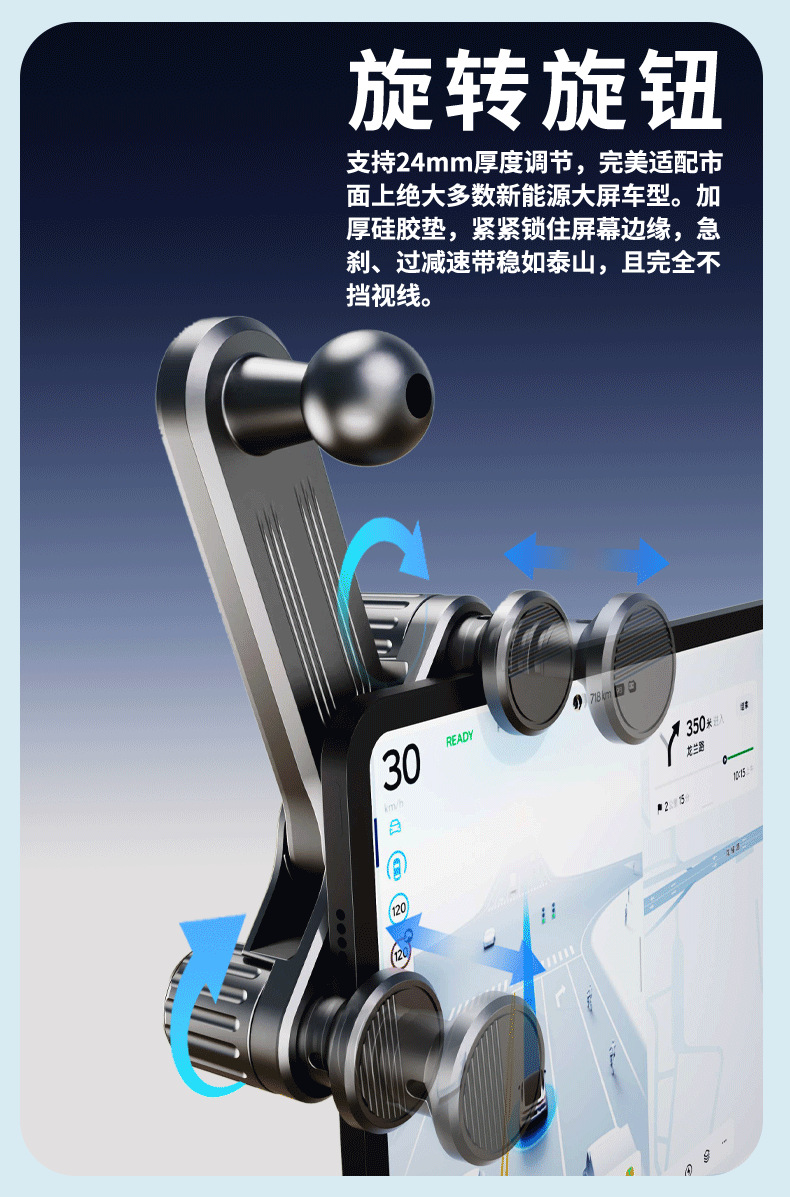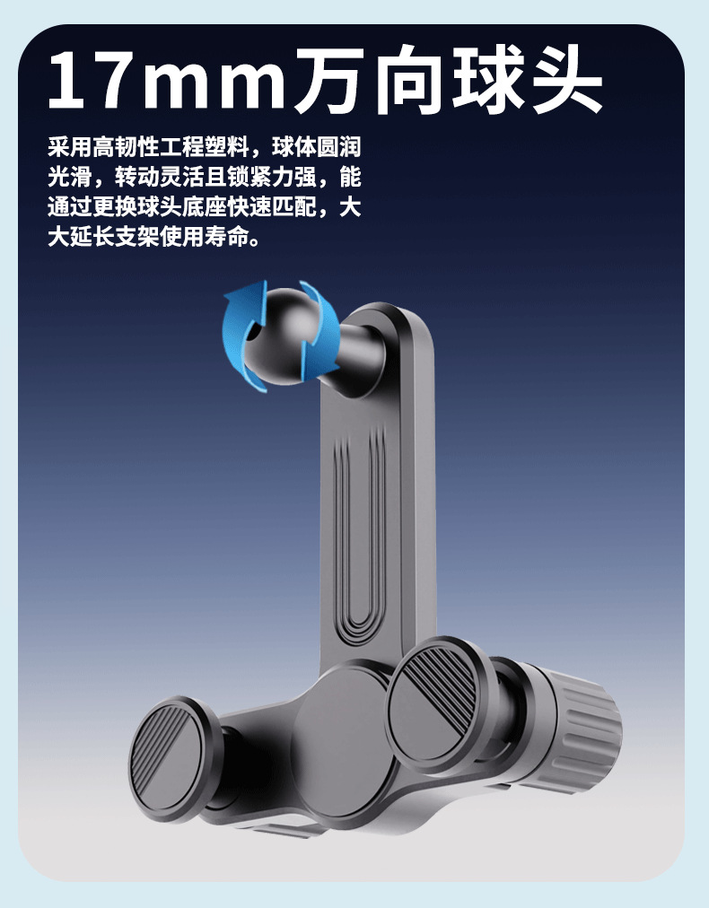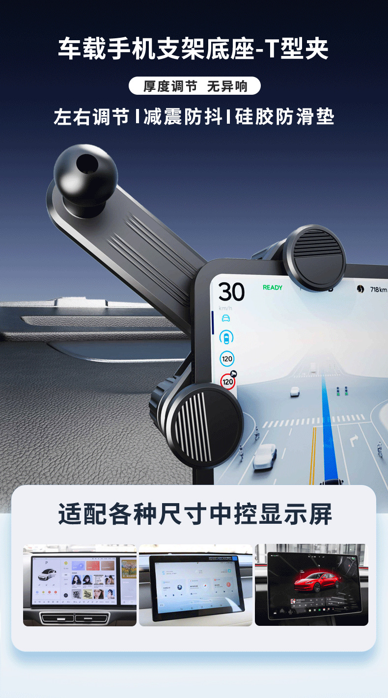 汽车中控大屏手机支架底座双旋钮锁紧17mm球头通用车载手机支架