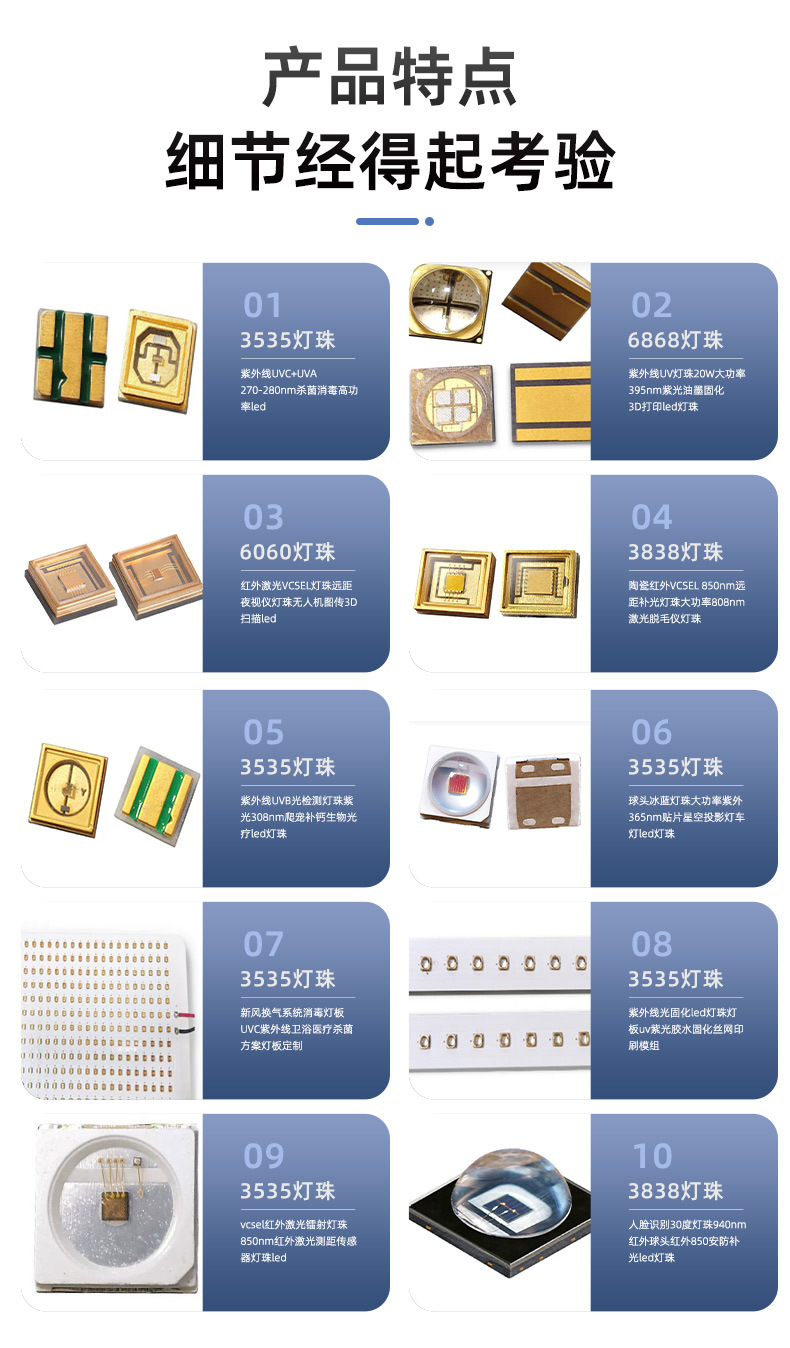 5050贴片式Led灯珠 美容杀菌UV固化灯具领域5054球头专用灯珠厂家
