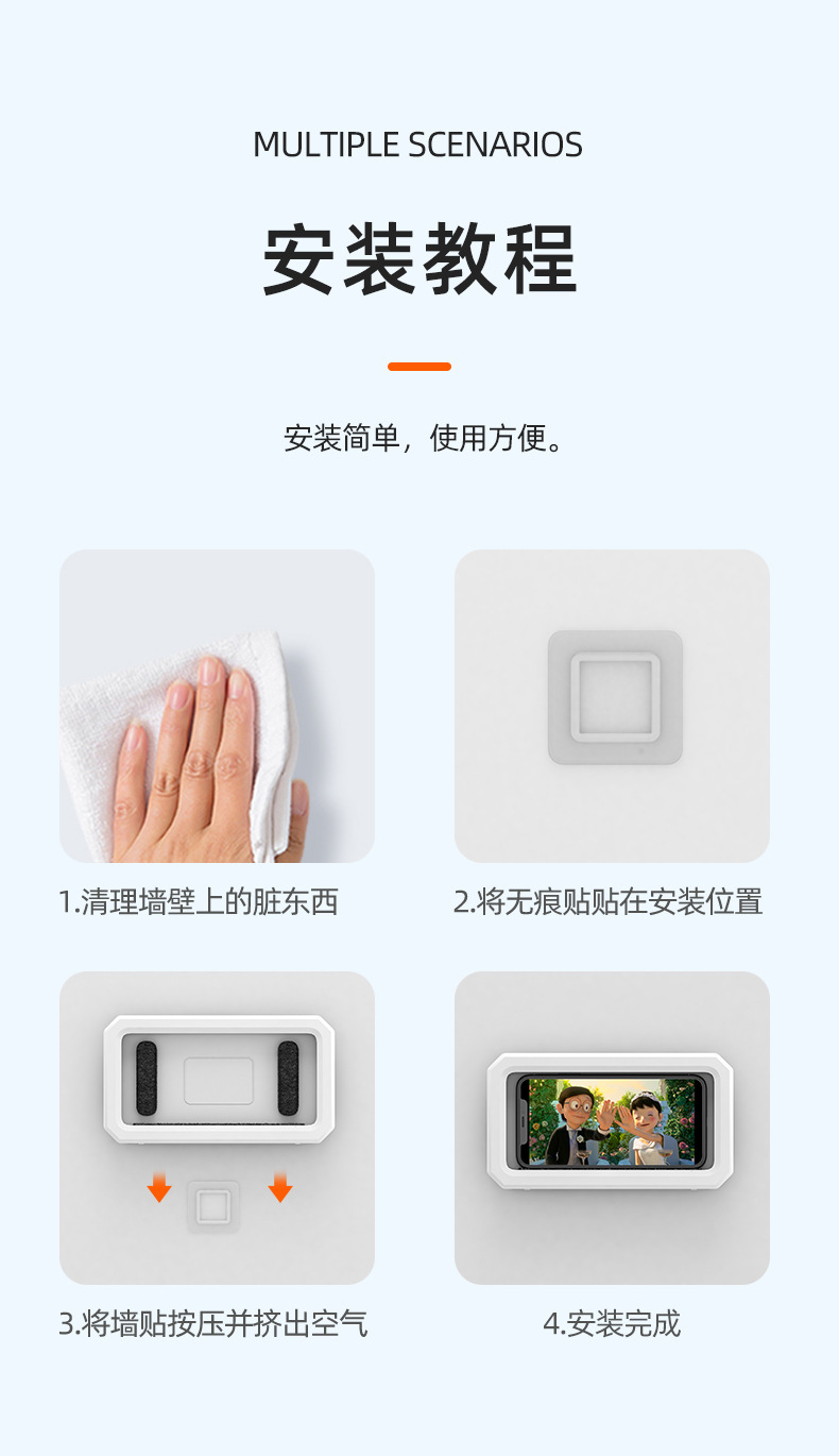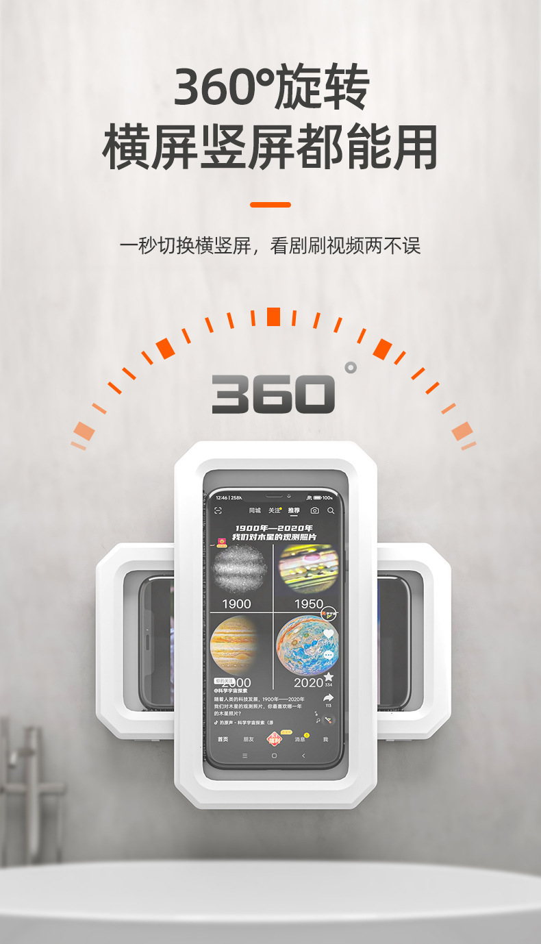 厂家批发洗澡神器通用厨房墙面360度旋转免打孔防摔防水手机盒,批发价,价格:5.8,厂家直销,厂家批发洗澡神器通用厨房墙面360度旋转免打孔防摔防水手机盒,免费拿样。