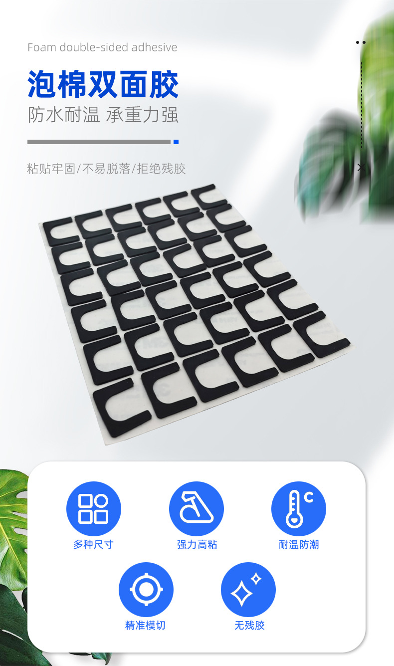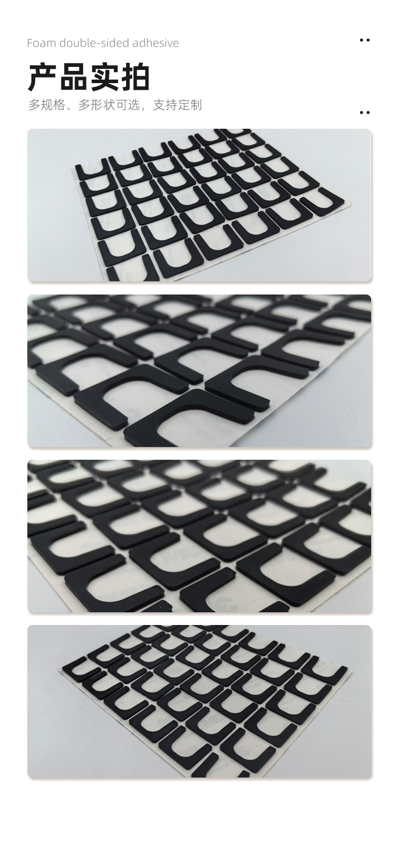 厂家定制泡棉双面胶黑色硅胶自粘防滑垫片U型防水耐温双面胶硅胶