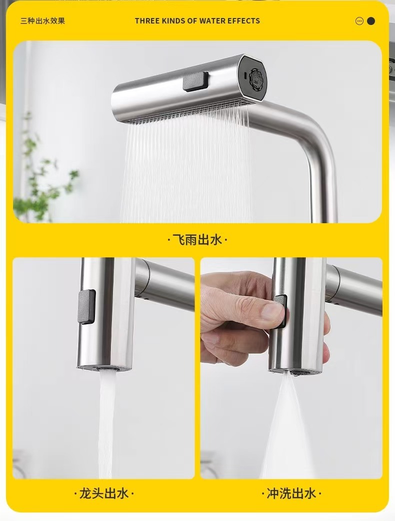 外贸不锈钢冷热抽拉飞雨瀑布龙头家用洗碗池洗菜盆水槽厨房水龙头,批发价,价格:40,厂家直销,外贸不锈钢冷热抽拉飞雨瀑布龙头家用洗碗池洗菜盆水槽厨房水龙头,免费拿样。