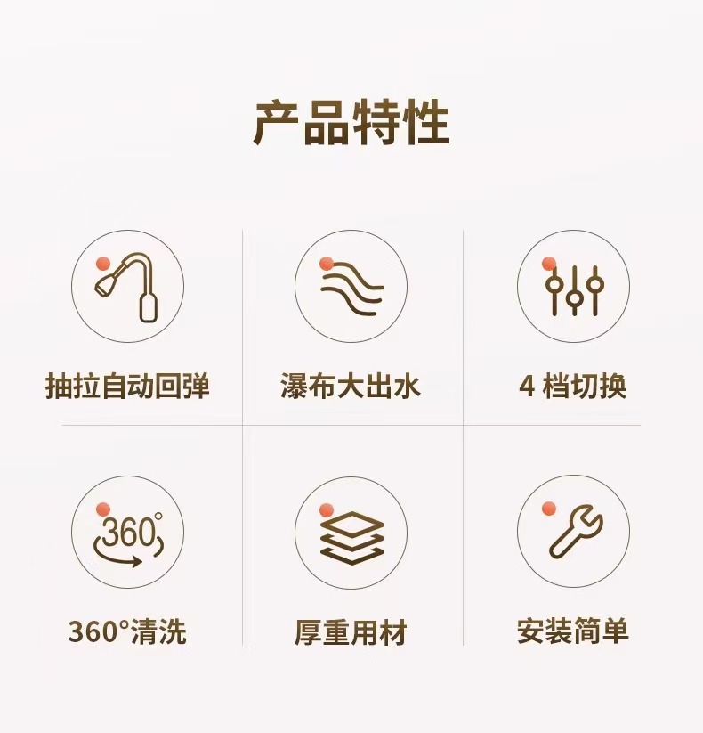 推荐理由:精品不锈钢材质,可360°旋转四种出水模式冷热调节。