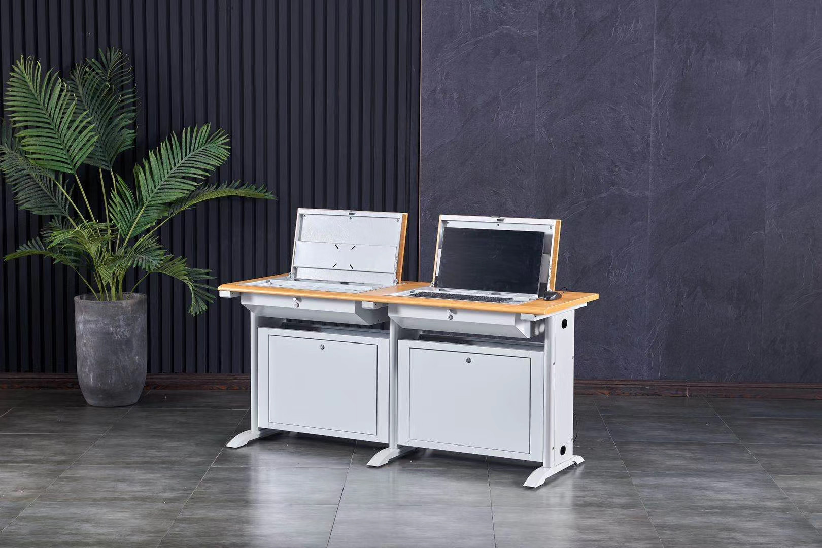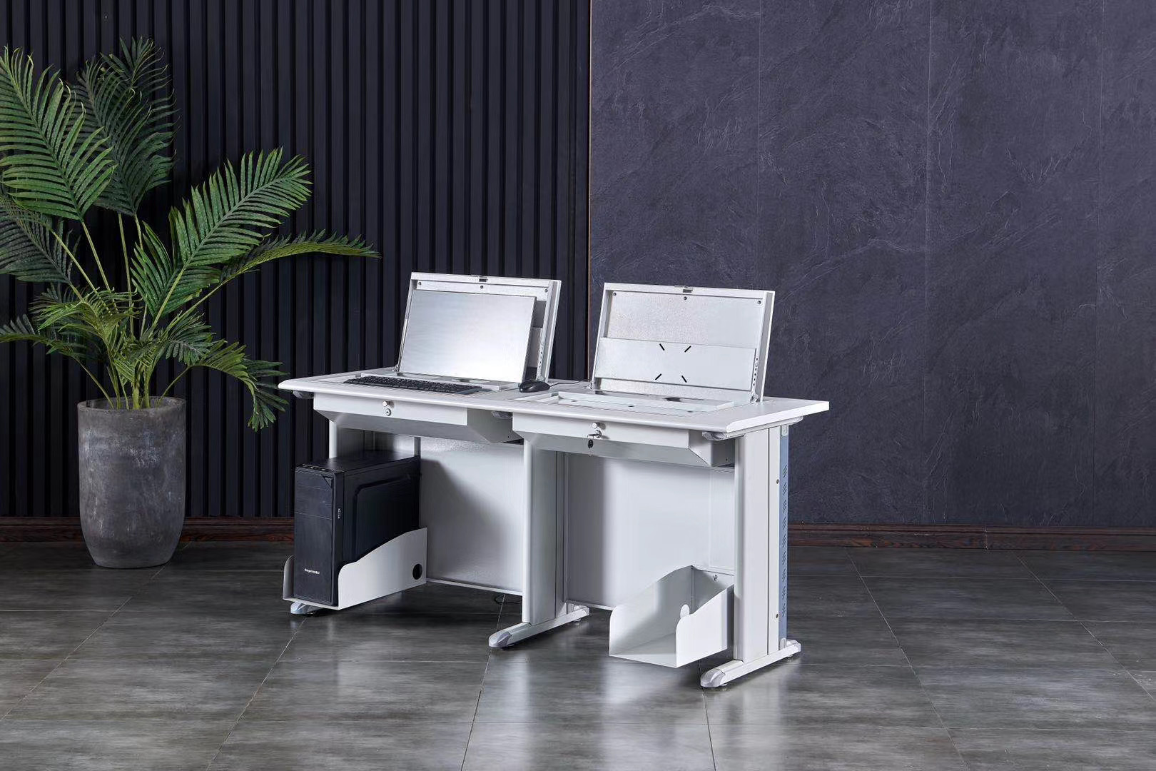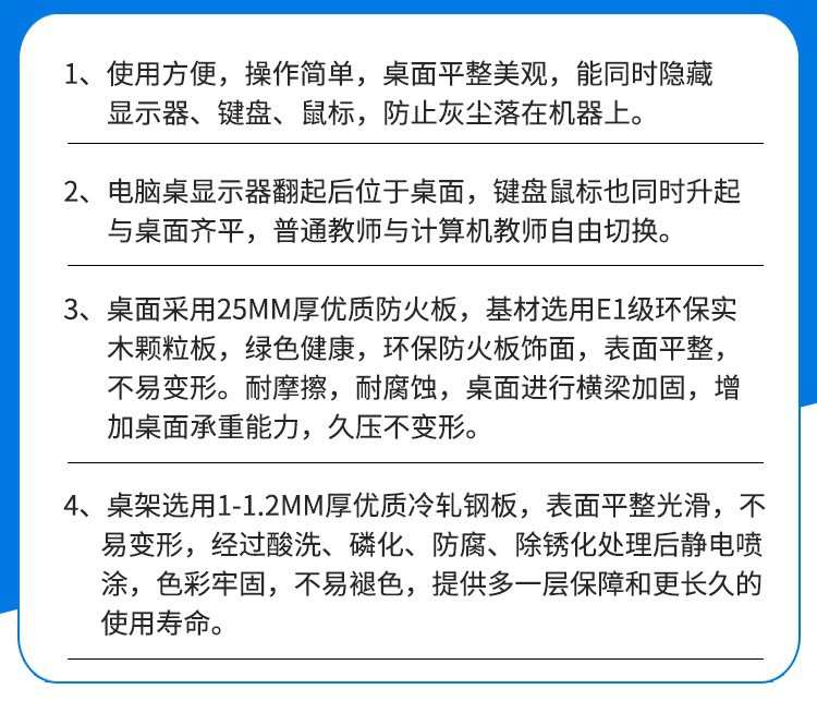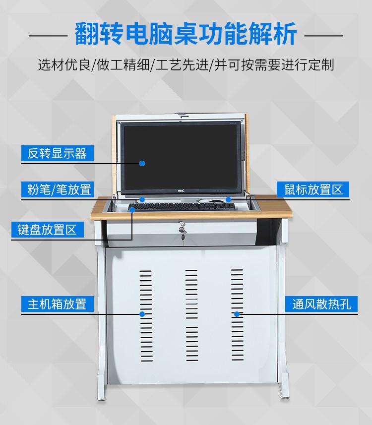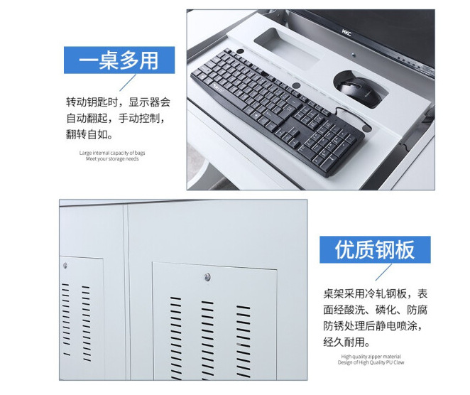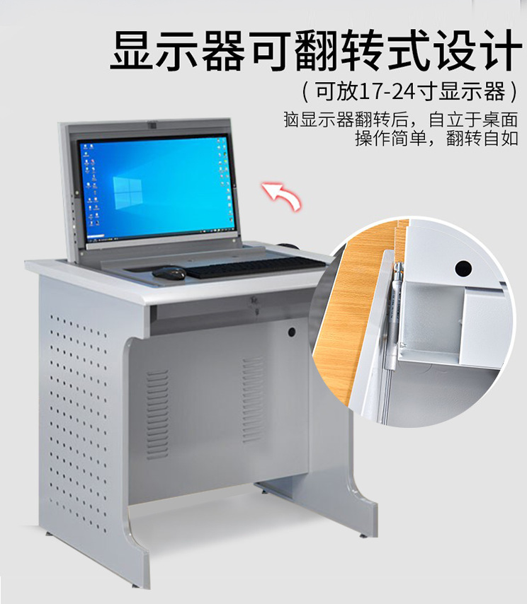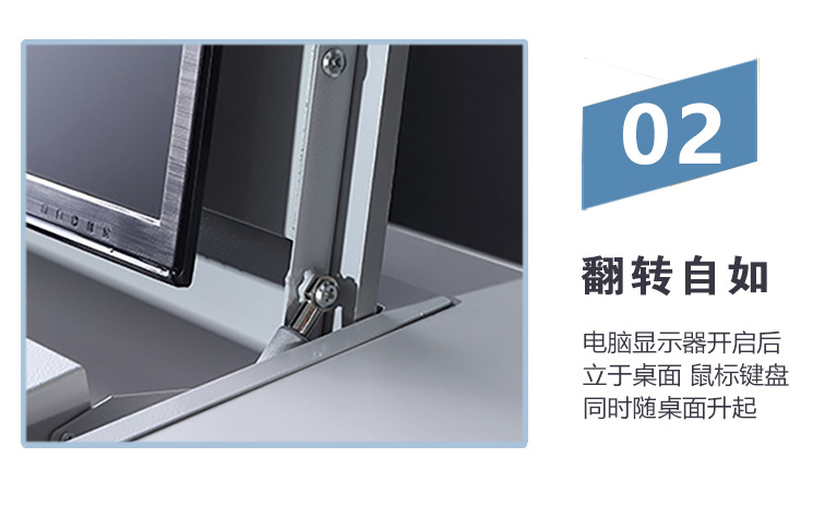 电脑翻转桌学校多媒体电脑培训机房厂家定制隐藏显示屏翻转电脑桌