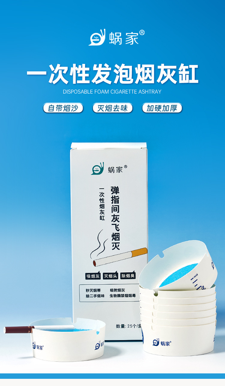 蜗家盒装一次性烟灰缸客厅办公商务酒店咖啡厅环保烟灰缸带灭烟沙