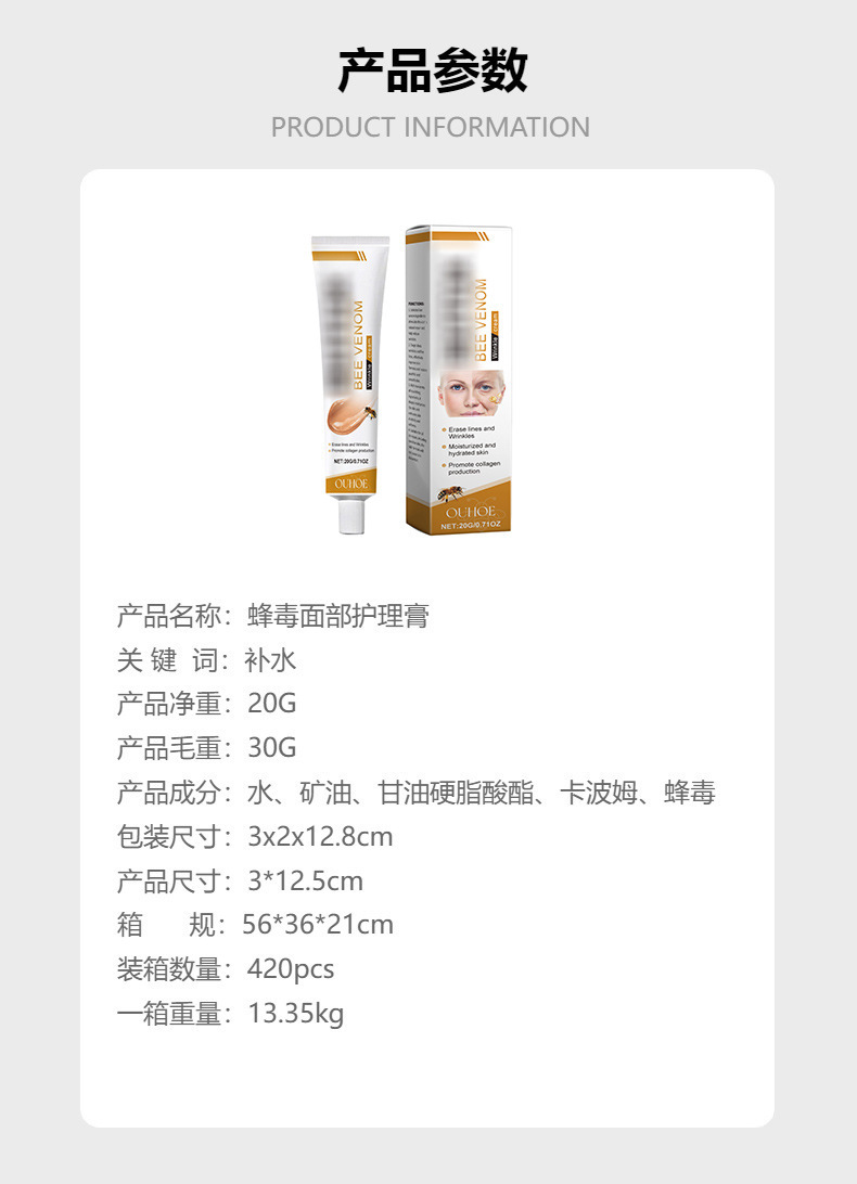 OUHOE 蜂毒面部护理膏 温和补水保湿提亮肌肤细腻嫩肤柔润护肤膏,批发价,价格:6,厂家直销,OUHOE 蜂毒面部护理膏 温和补水保湿提亮肌肤细腻嫩肤柔润护肤膏,免费拿样。