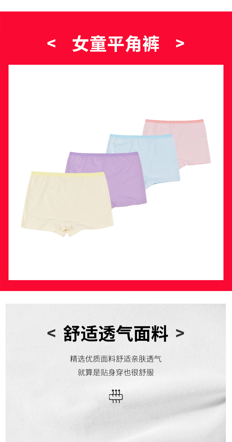 新款学生中大童内裤 女童平角多巴胺纯色棉质宽松内裤 女宝宝儿童