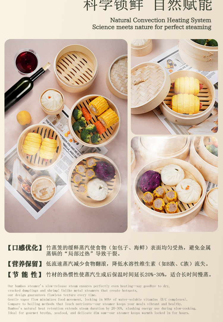 天然毛竹蒸笼家用商用包子点心蒸屉蒸架笼屉小笼包精品竹制竹蒸笼