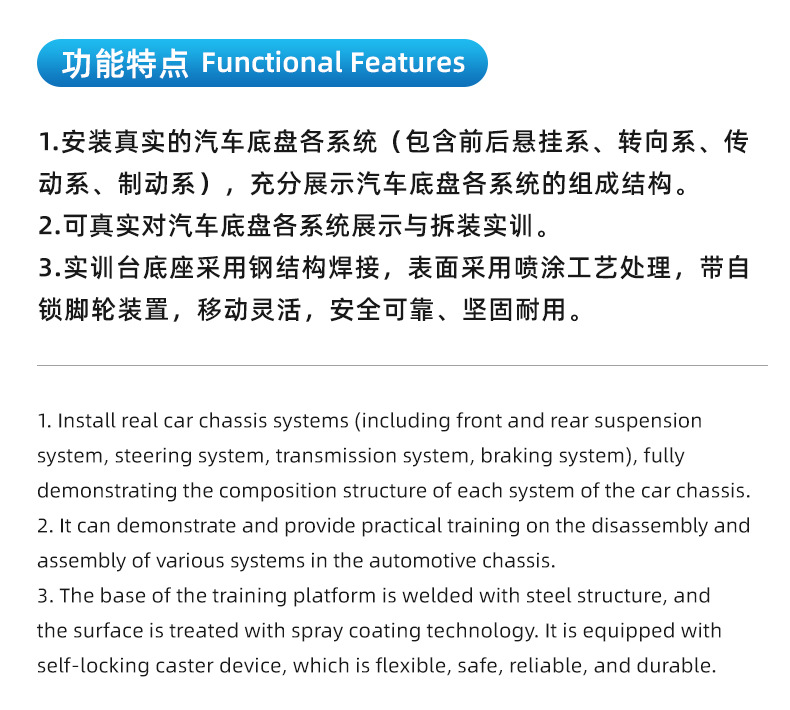定制汽车整车底盘实训台汽车教学设备模型实训台实训设备教学装置