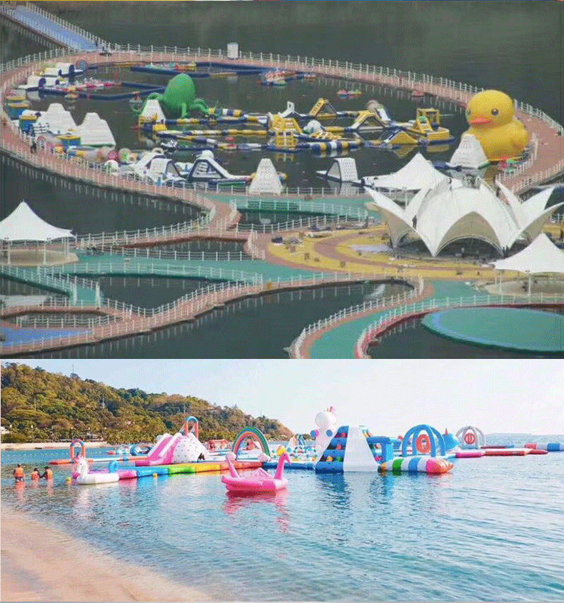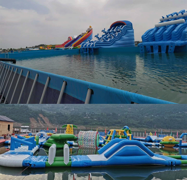 户外新款充气水上乐园 儿童滑梯成人游泳池闯关淘气堡 香蕉船攀岩