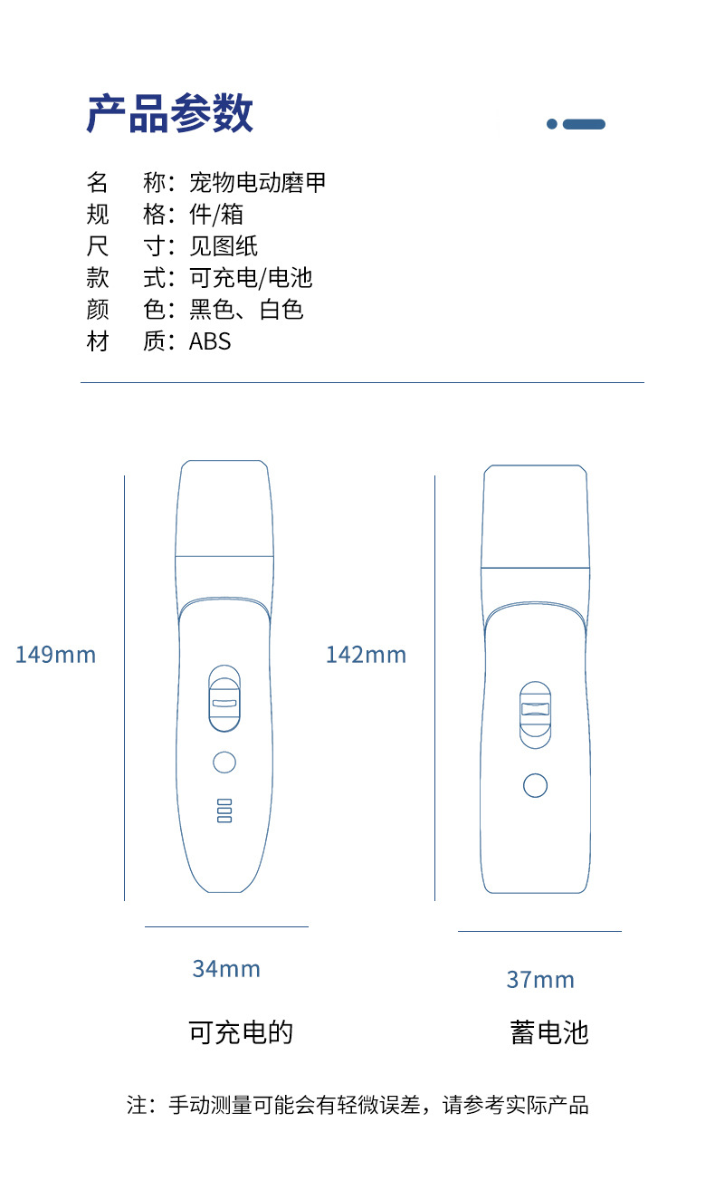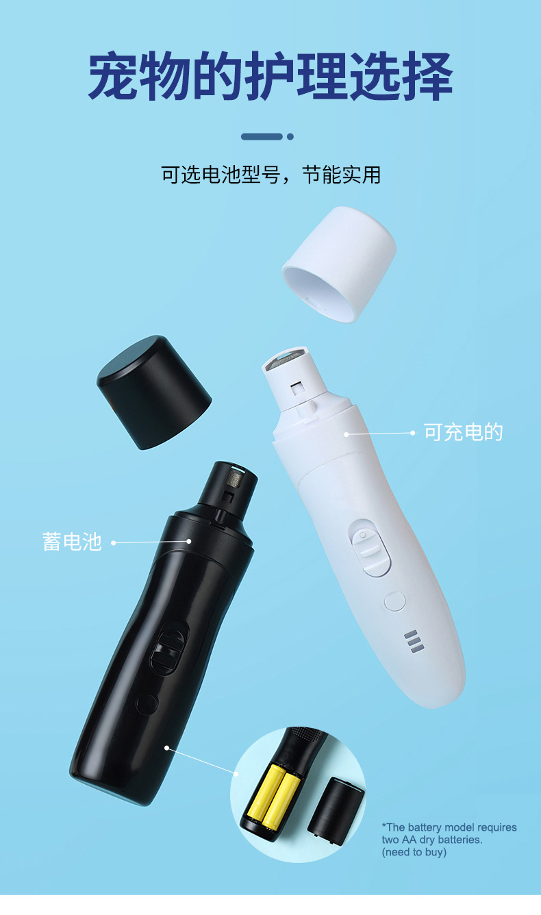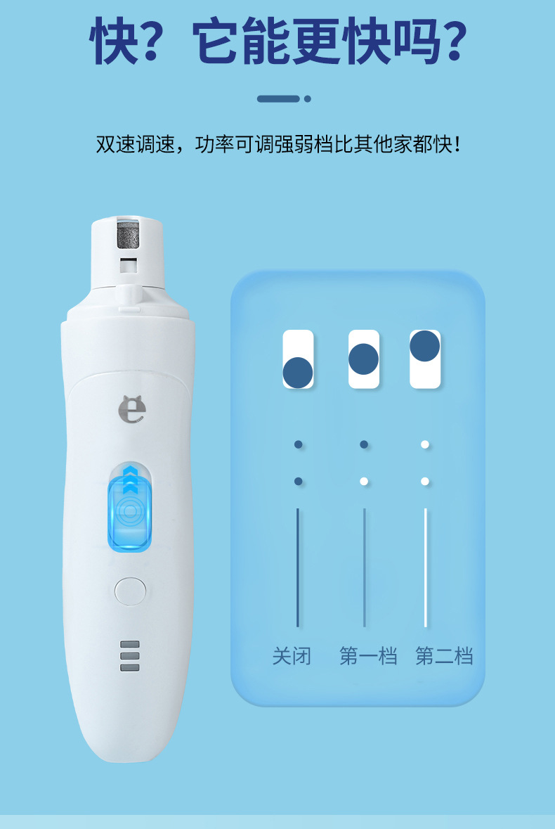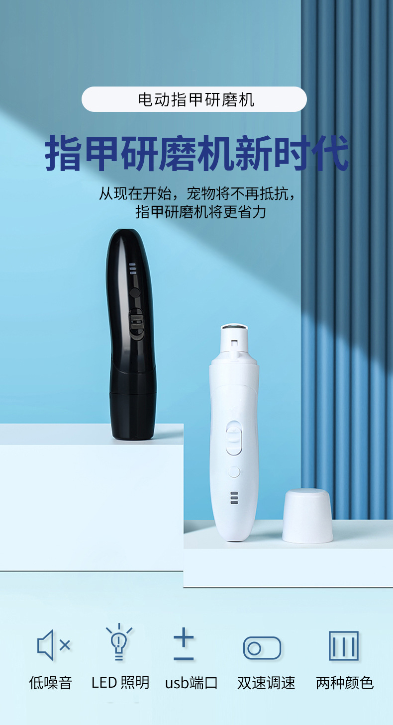 宠物狗狗电动指甲研磨机双速调速LED照明灯低噪音多端口磨削法