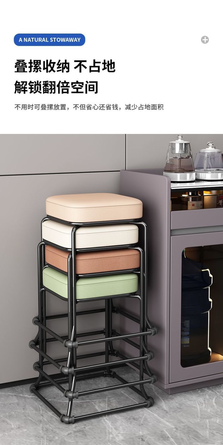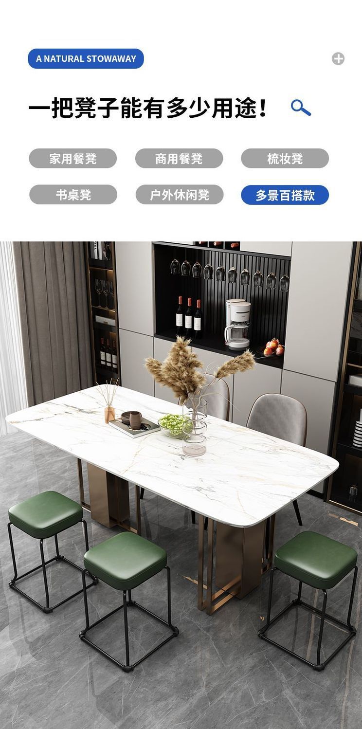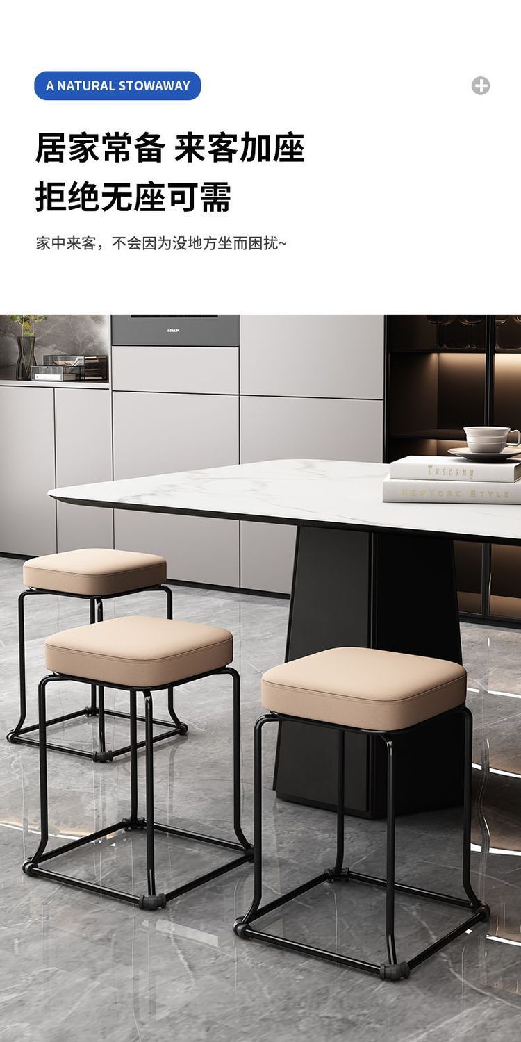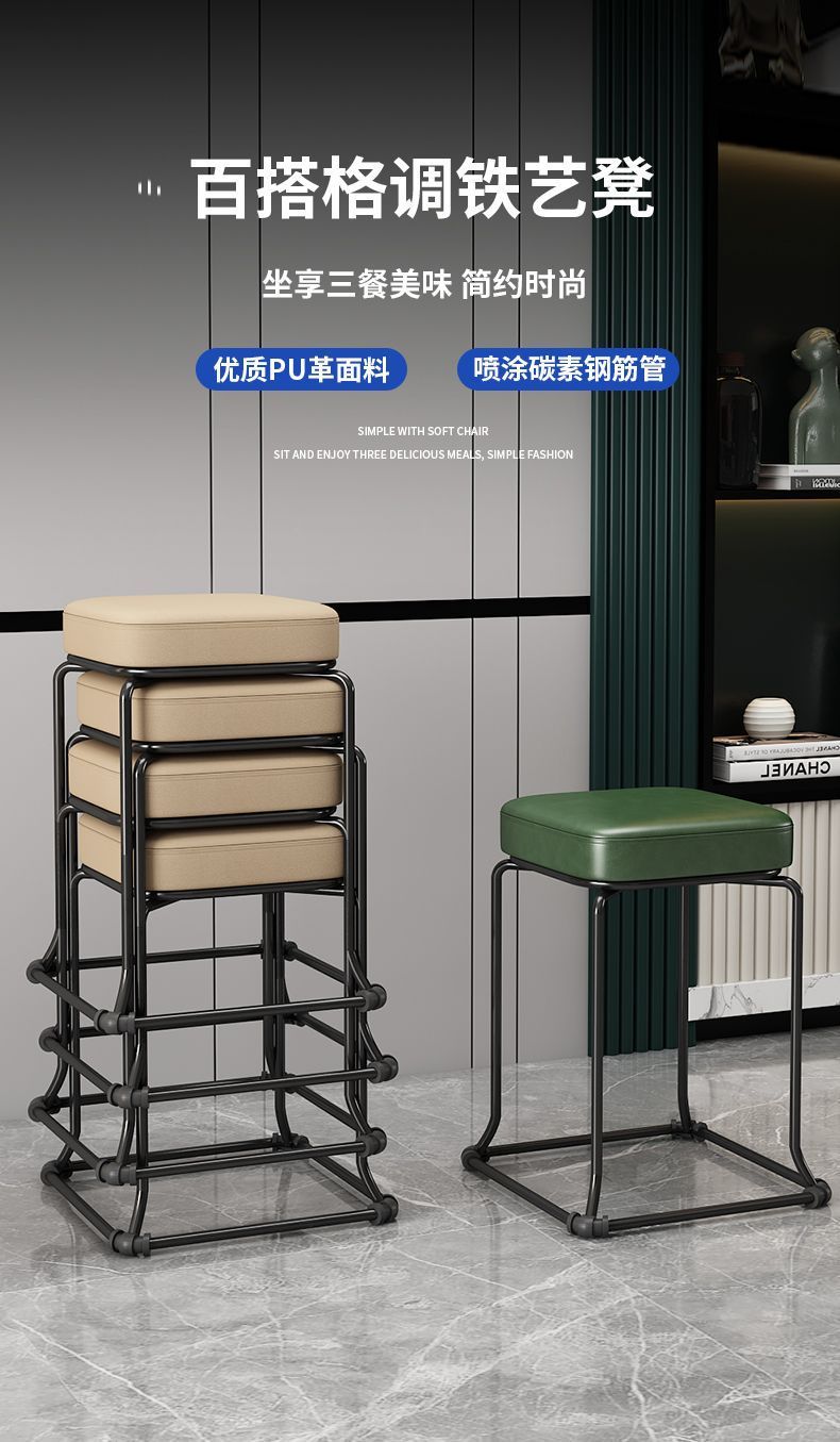 实心钢筋方凳家用可叠放成人软包皮面圆凳特厚铁艺餐桌高凳椅子