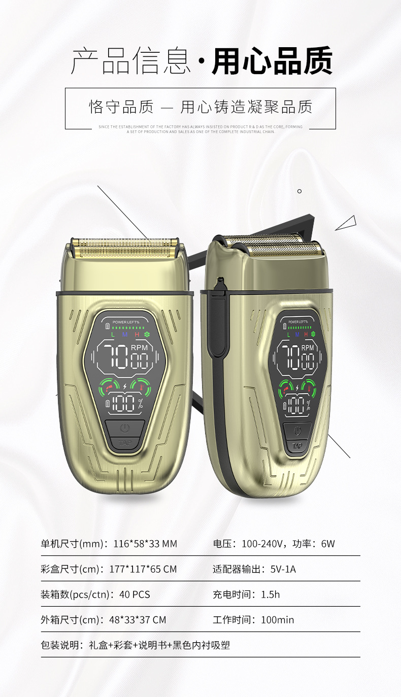 RSCW-5091往复式增白器可调节转速电动剃须刀男刮胡刀光头理发器