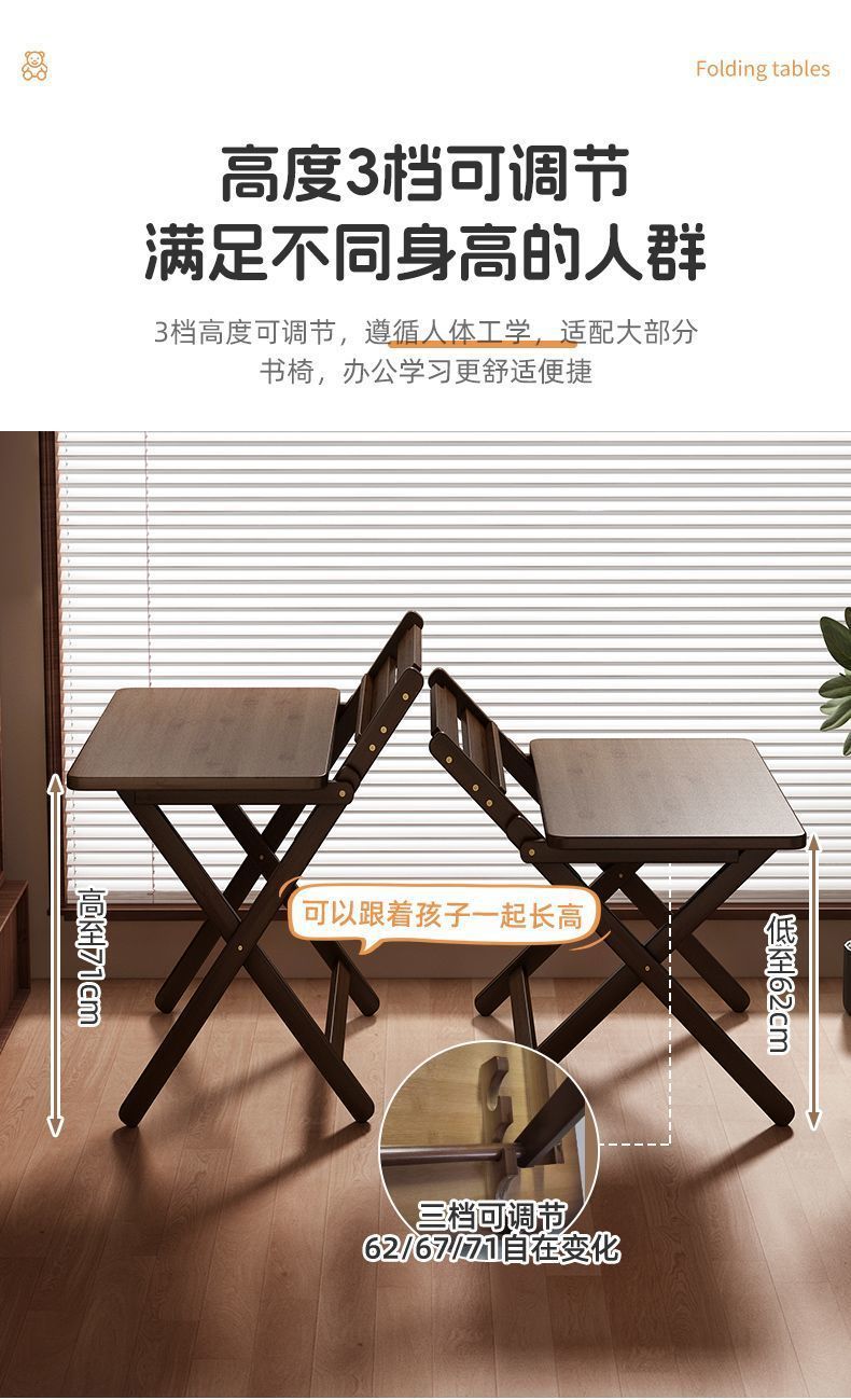 书桌折叠桌高度三挡可调节学习写字桌电脑桌书桌小户型家用办公桌