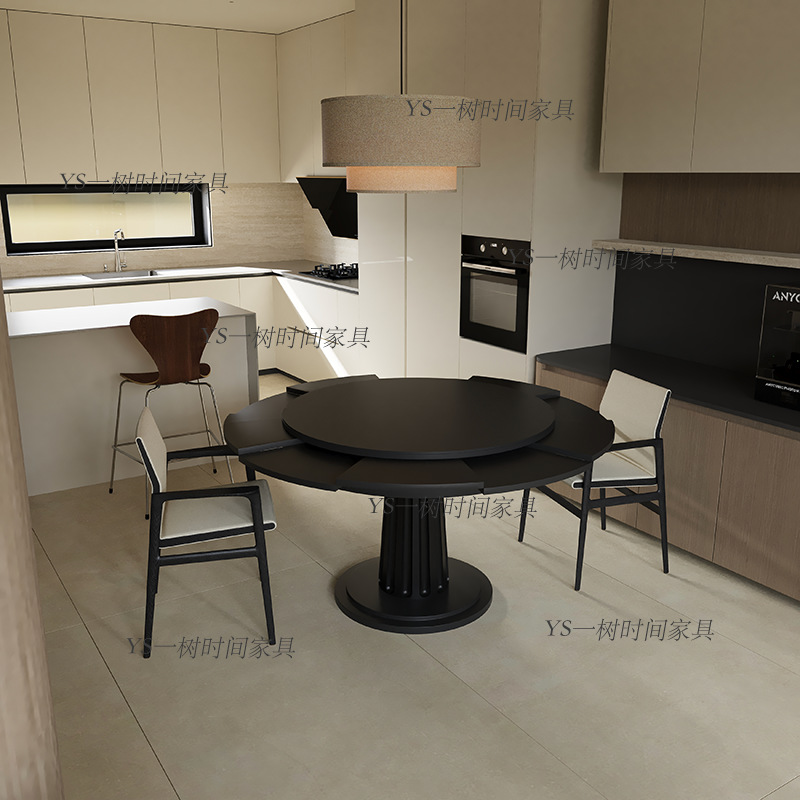 复古法式小圆桌旋转伸缩餐桌小户型简约变形实木收纳带转盘定制