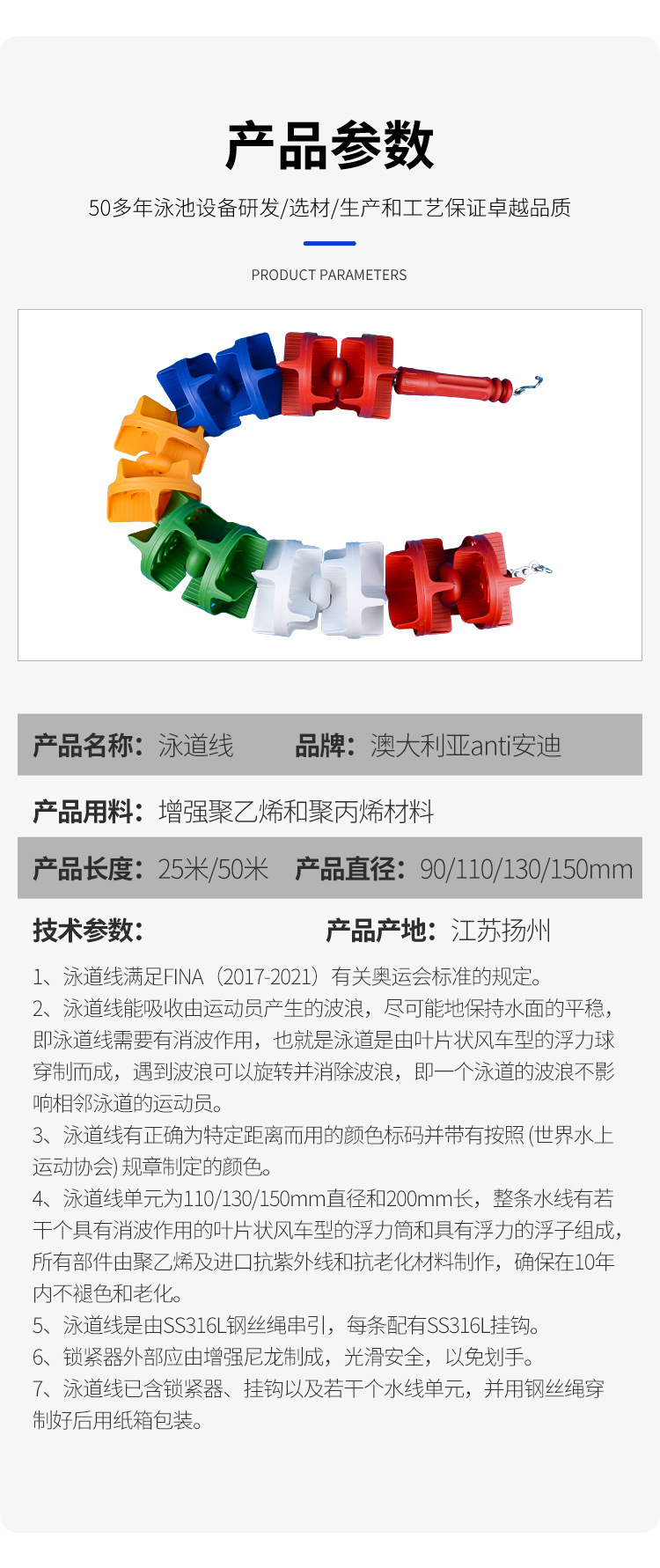 anti安迪泳道线泳池分道线泳池水线泳池比赛消波分道线及辅助设施