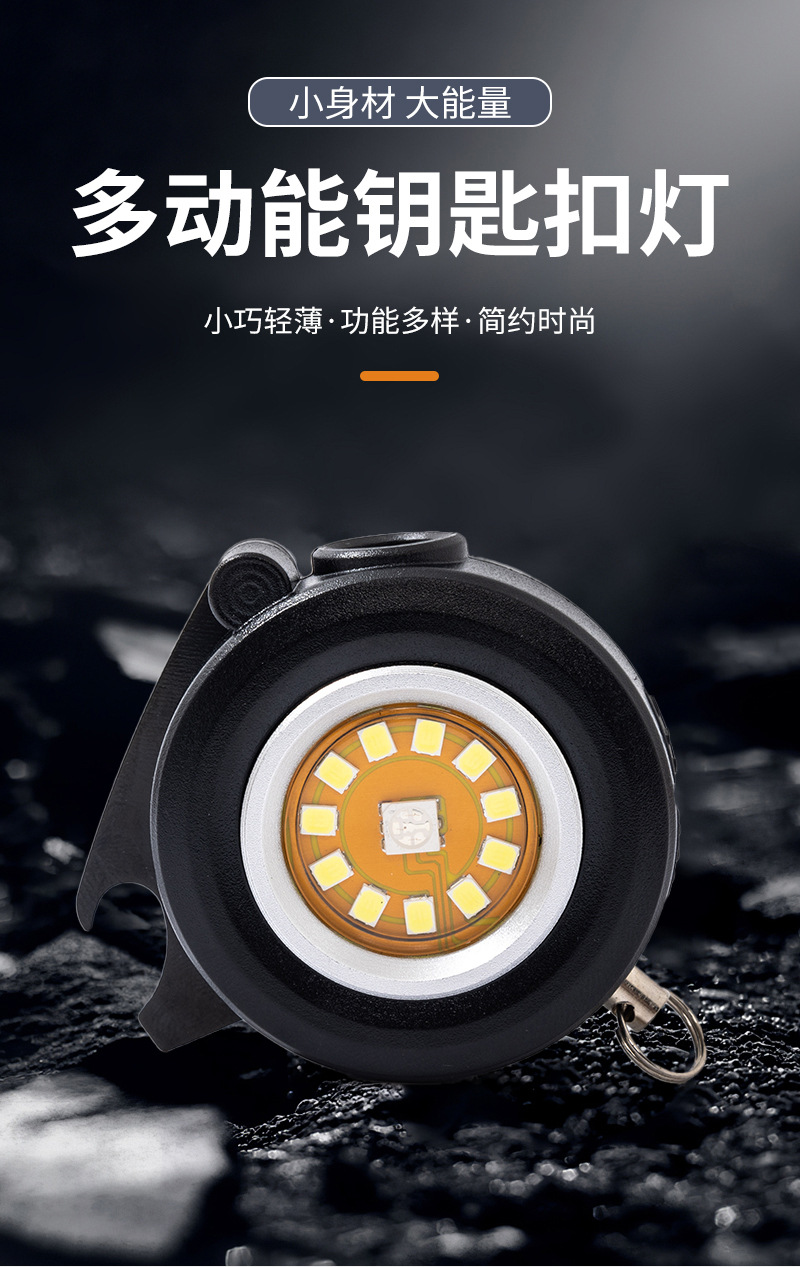 跨境新款多功能汽修磁吸聚泛光RGB炫彩超长续航迷你便携钥匙扣灯
