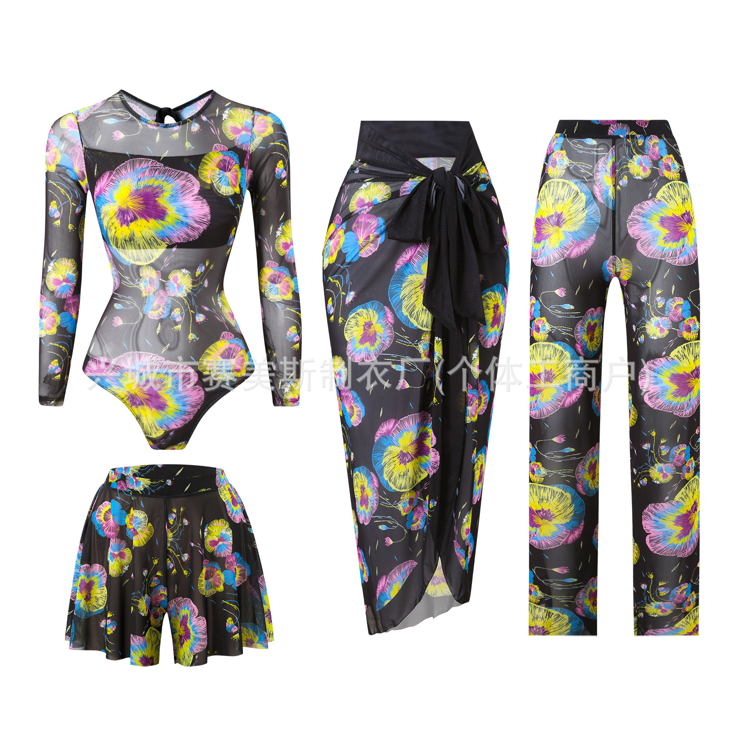 Купальник连体长袖防晒泳衣四件套网纱长裤俄罗斯泳衣女,批发价,价格:110,厂家直销,Купальник连体长袖防晒泳衣四件套网纱长裤俄罗斯泳衣女,免费拿样。