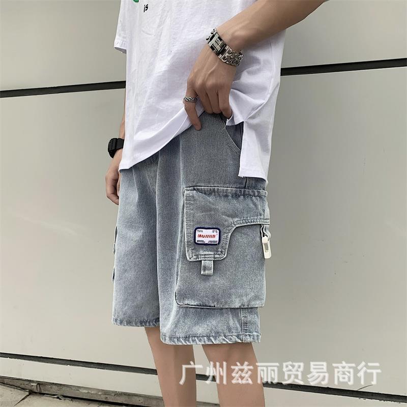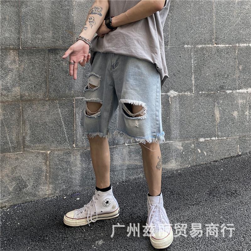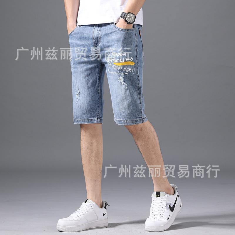 外贸批发跨境大码2025夏季新款牛仔中裤裤复古破洞修身男士五分裤
