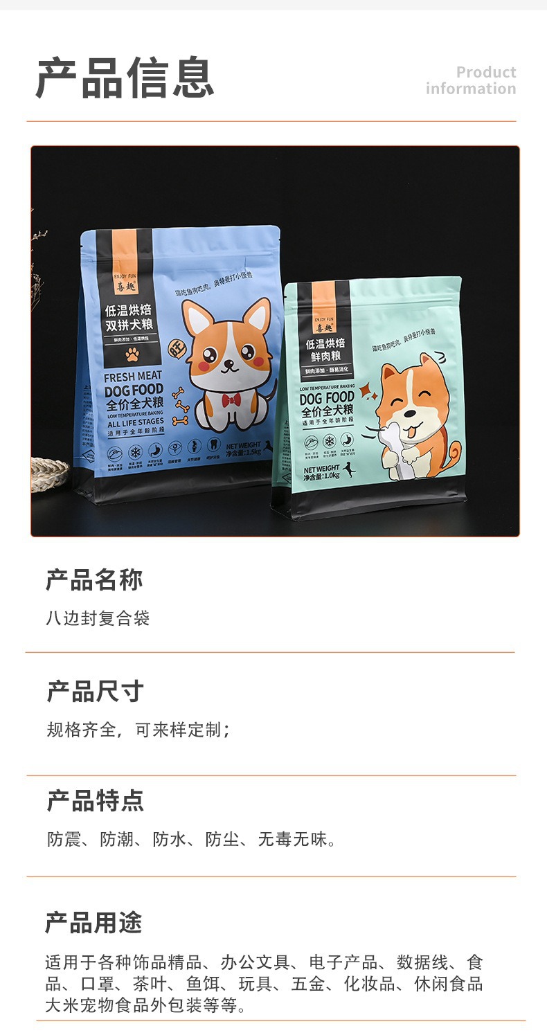 定制 八边封自立袋塑料咖啡豆休闲零食食品茶叶密封袋自封铝箔袋