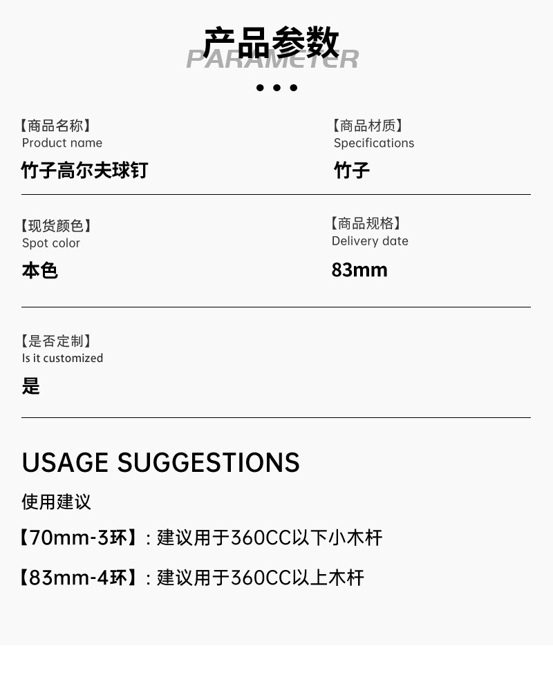 厂家批发竹制高尔夫球钉70mm83mmTEE纯色木质球钉golf tee配件,批发价,价格:0.11,厂家直销,厂家批发竹制高尔夫球钉70mm83mmTEE纯色木质球钉golf tee配件,免费拿样。