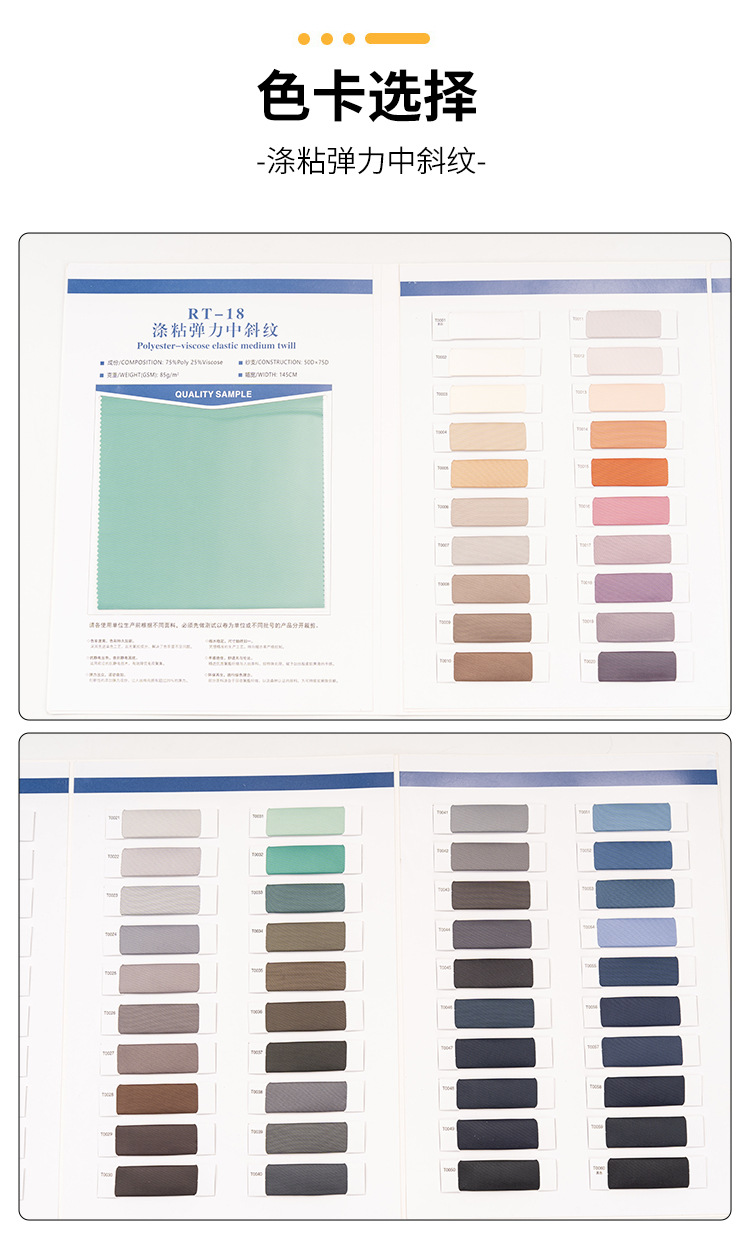 涤粘弹力中斜纹 色号齐全 欢迎询价