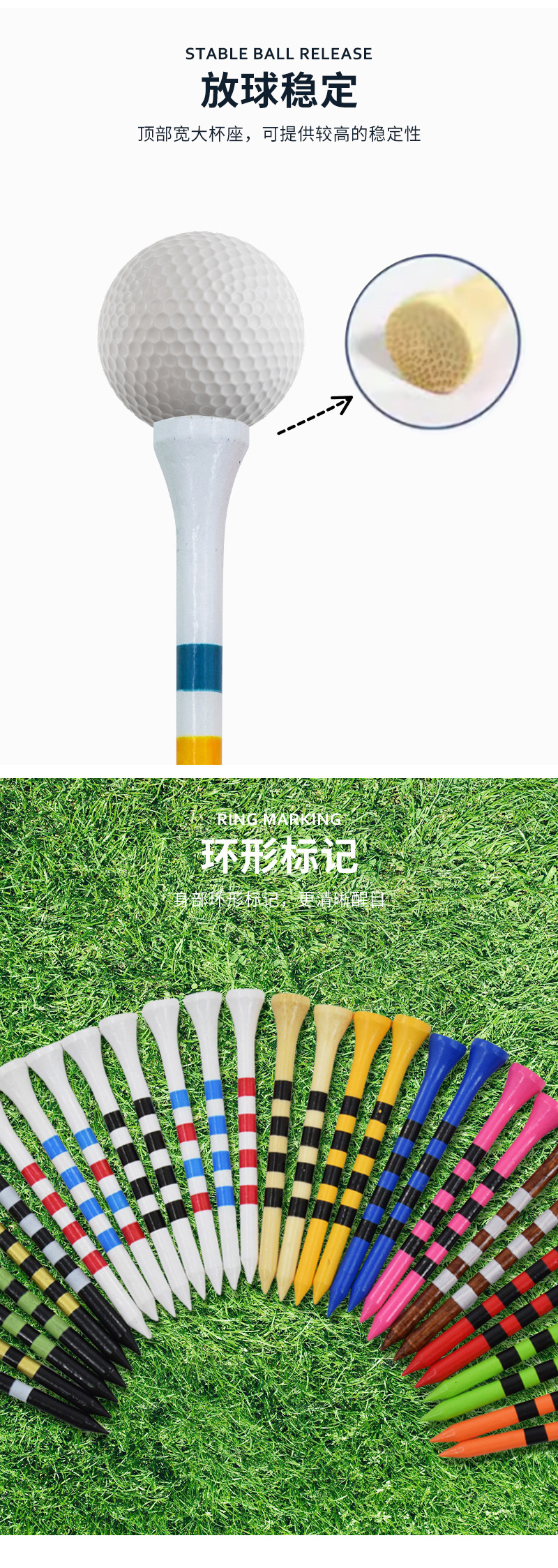 厂家定制高尔夫球钉条纹款竹制高尔夫球场配件用品多种golftee