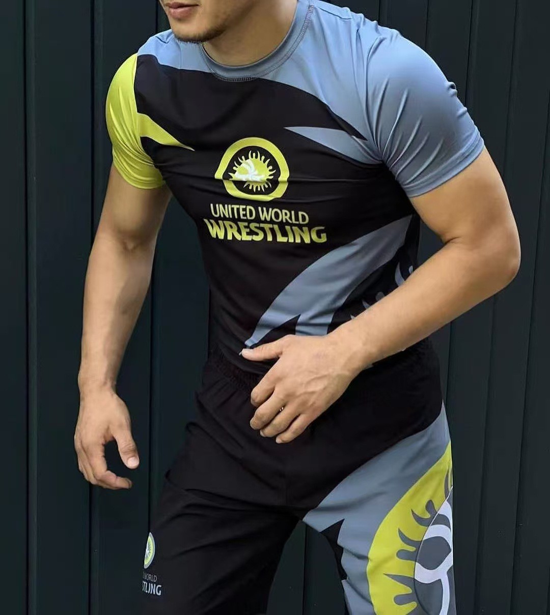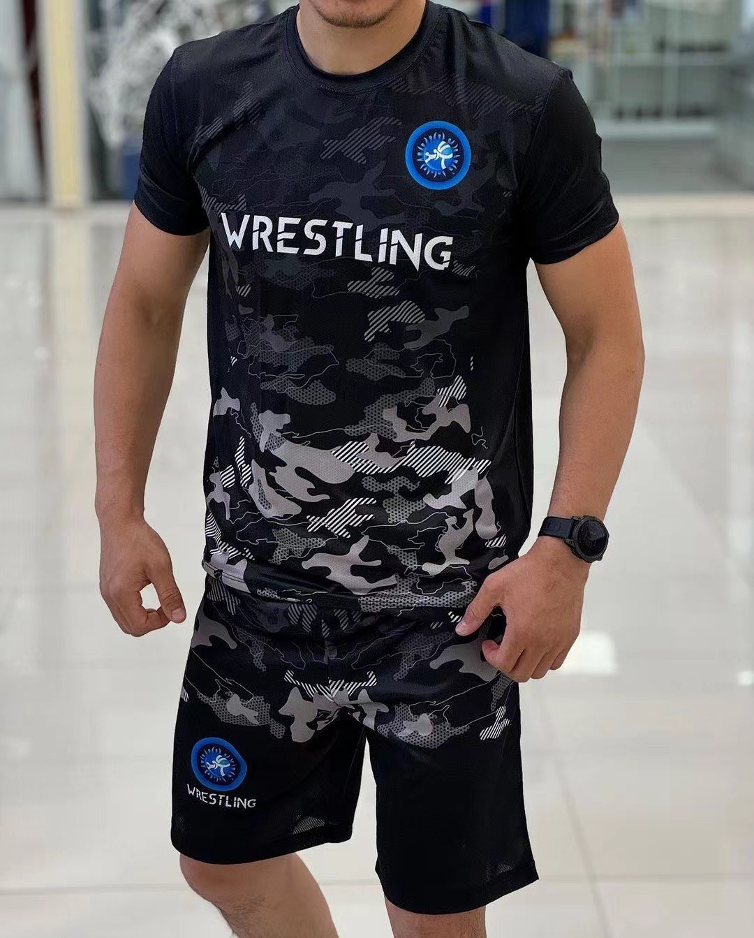 优质休闲百搭涤纶面料夏季运动数码印花速干拳击格斗健身T恤套装