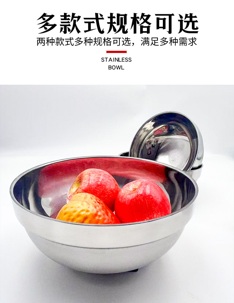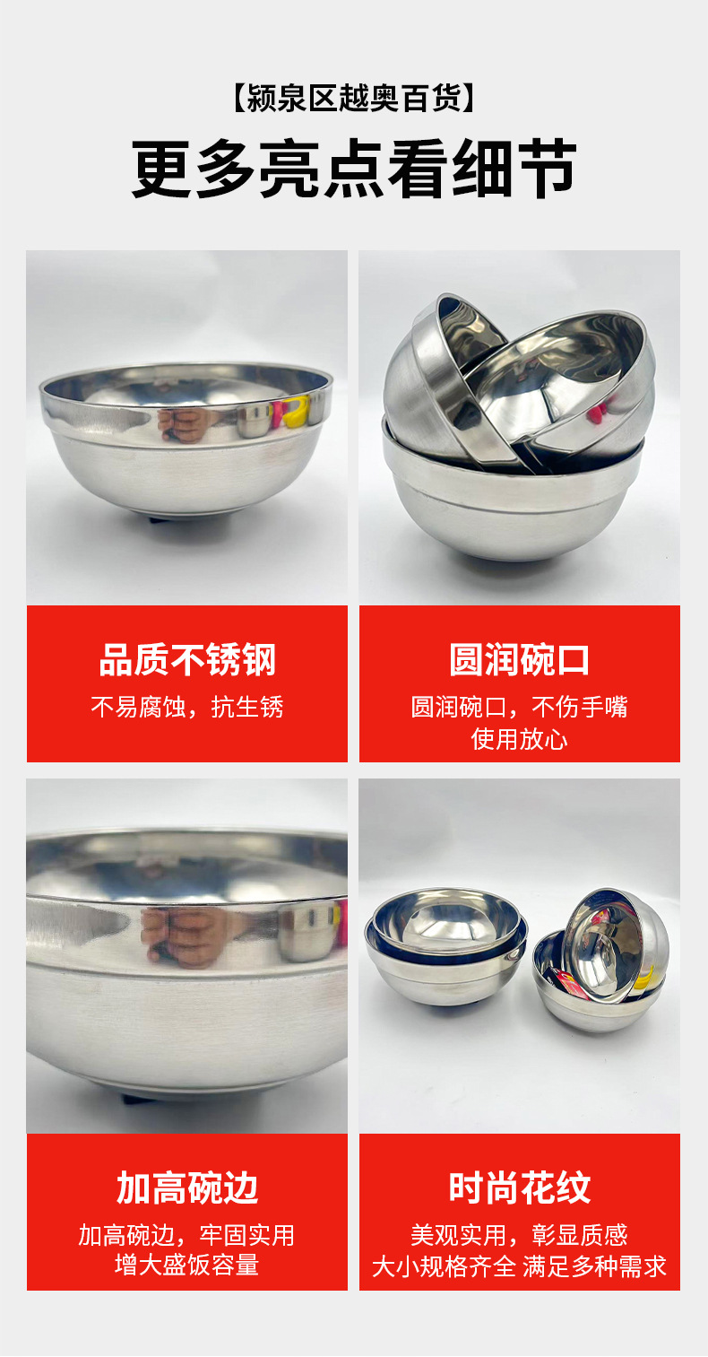 不锈钢百合碗商用不锈钢汤碗加厚双层铂金碗食堂学生不锈钢饭碗