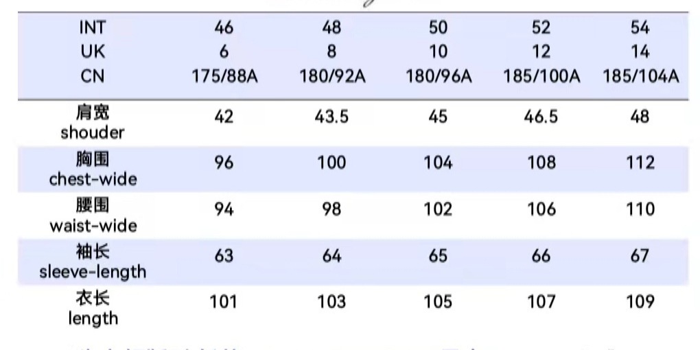 尺码 衣长后中 胸围 袖长