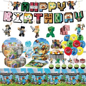 新款我的世界主题派对餐具套装像素世界纸盘儿童生日派对装饰用品