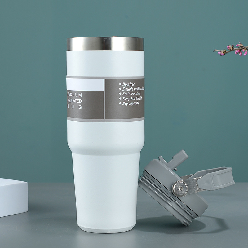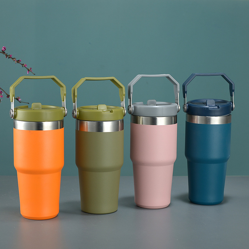 外贸304不锈钢保温杯双层真空大容量水杯30oz提手冰霸杯