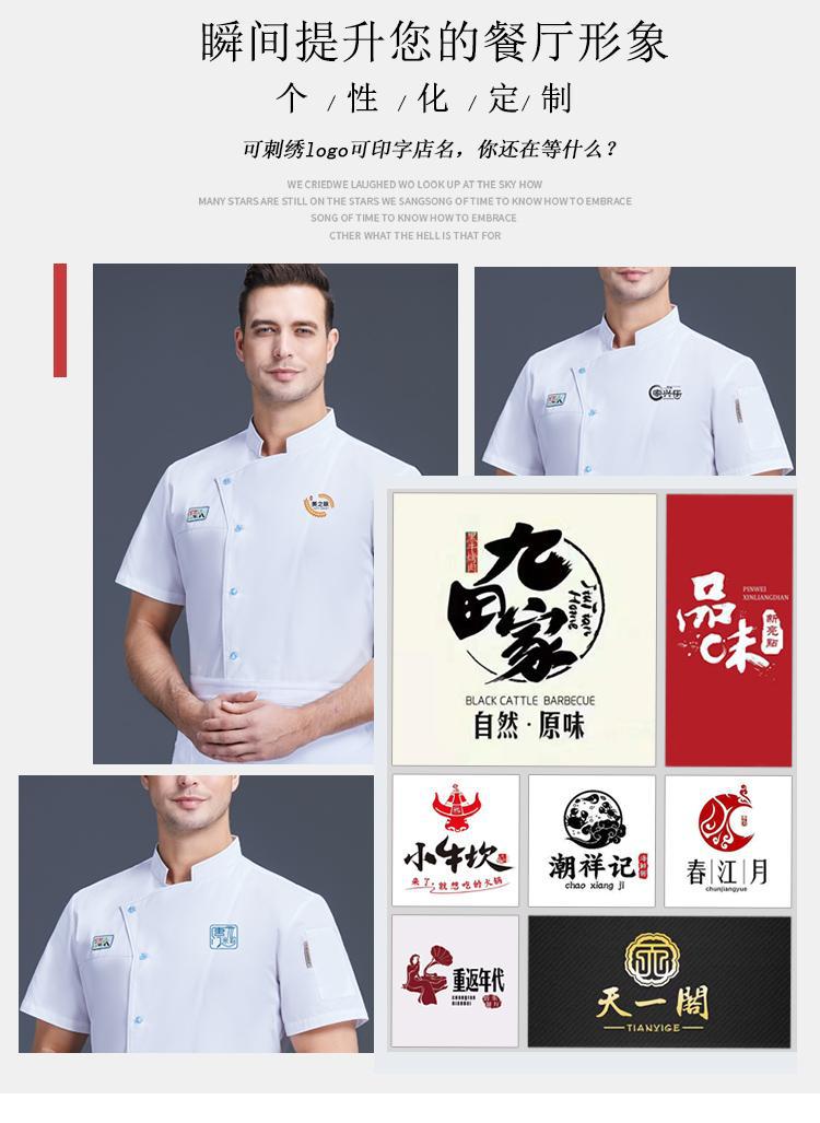 厨师工作服男女同款短袖夏季透气餐饮饭店食堂酒店厨师服定制logo,批发价,价格:45,厂家直销,厨师工作服男女同款短袖夏季透气餐饮饭店食堂酒店厨师服定制logo,免费拿样。