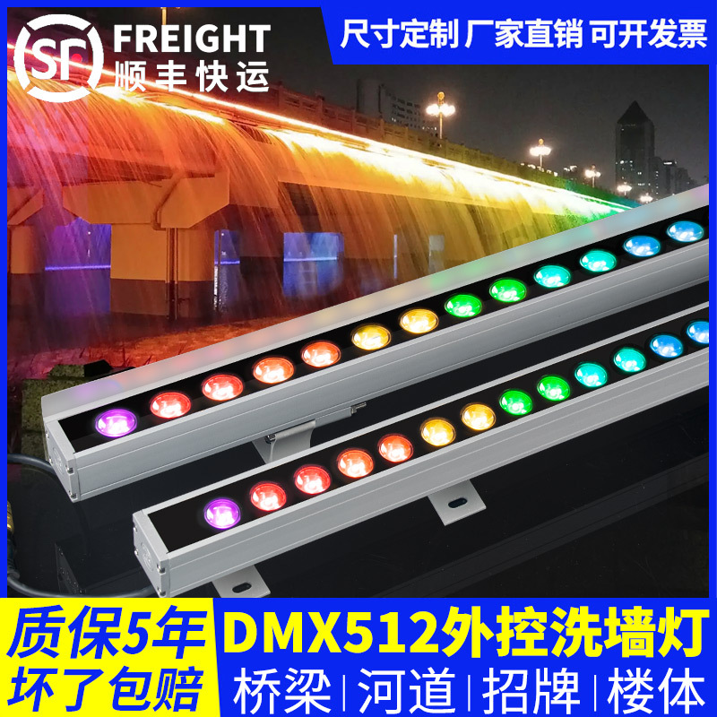DXM512外控户外洗墙灯防水全彩单色七彩流水渐变外墙河道 别墅