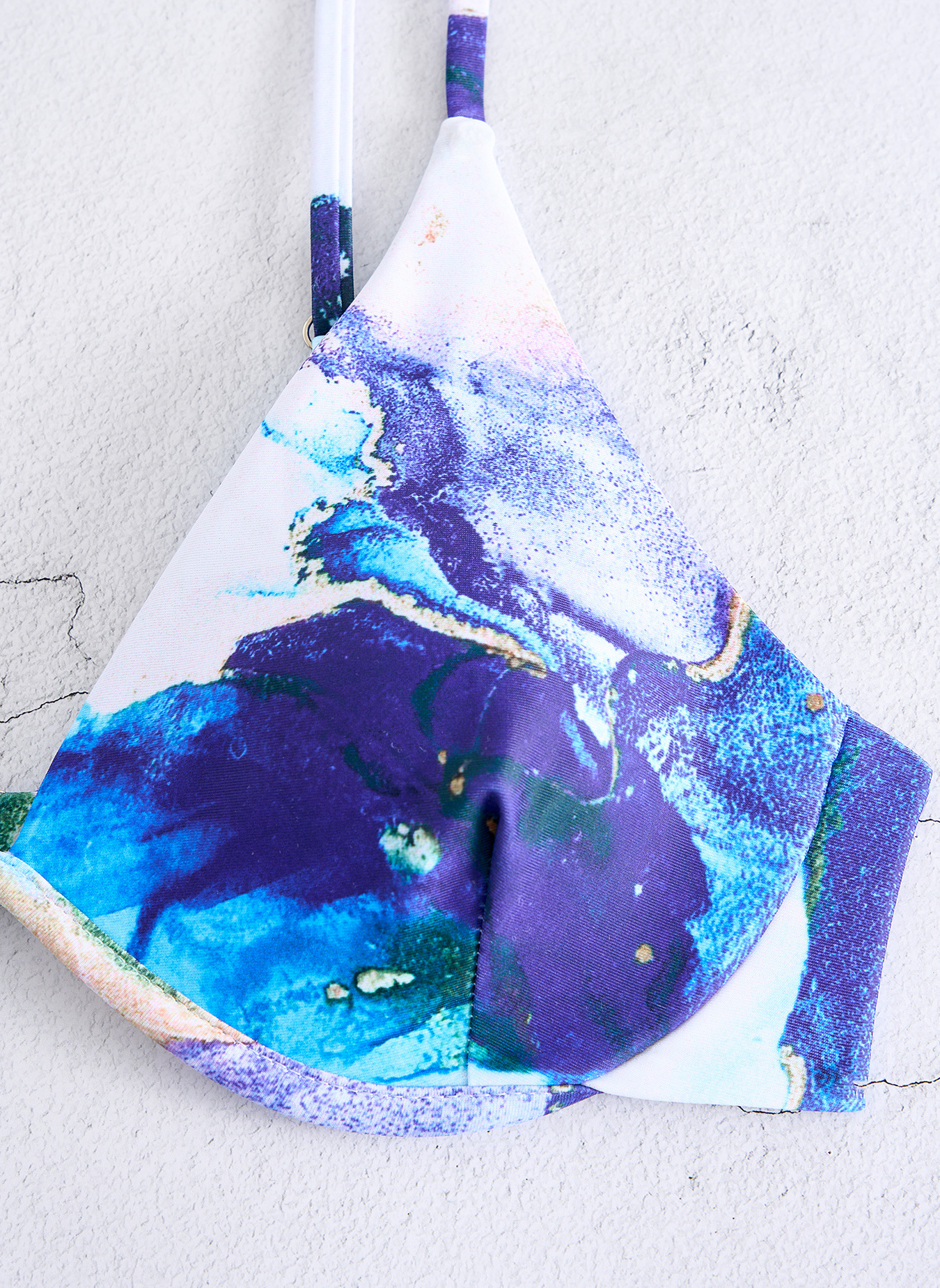 欧美外贸泳衣女分体三件套裙式扎染印花聚拢性感三点式比基尼罩衫