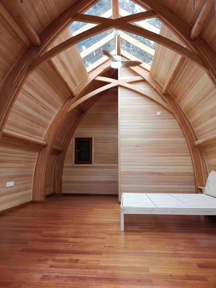 定制户外防腐木屋半圆形木屋船屋网红景区可移动木头房子民宿休息