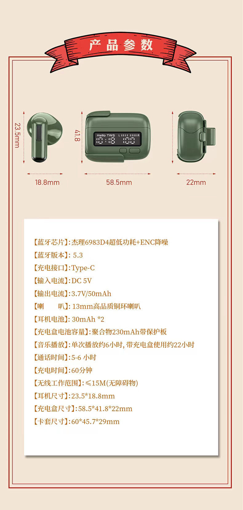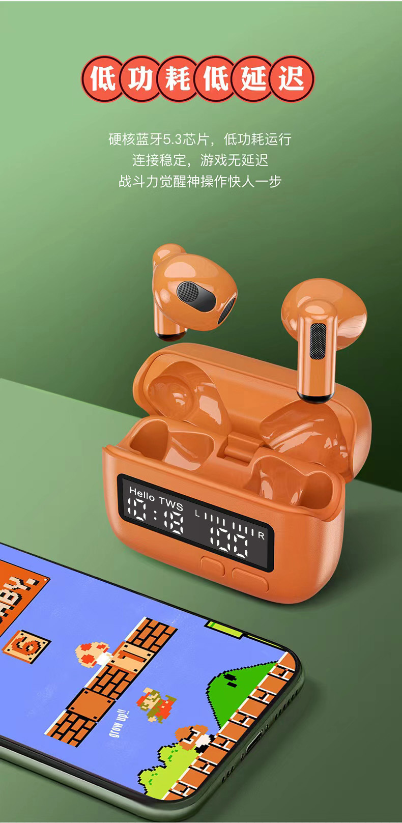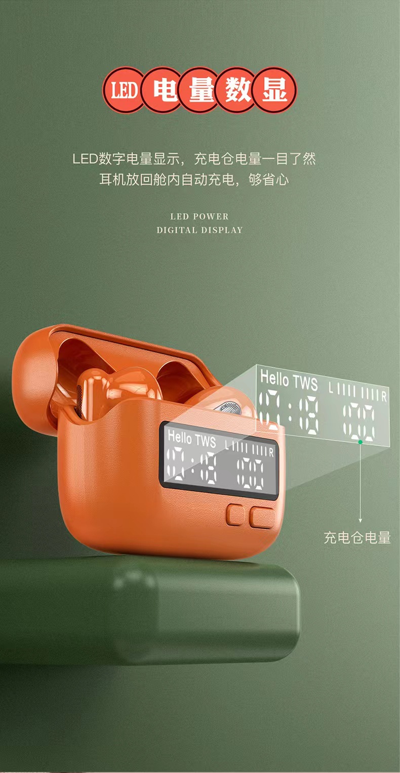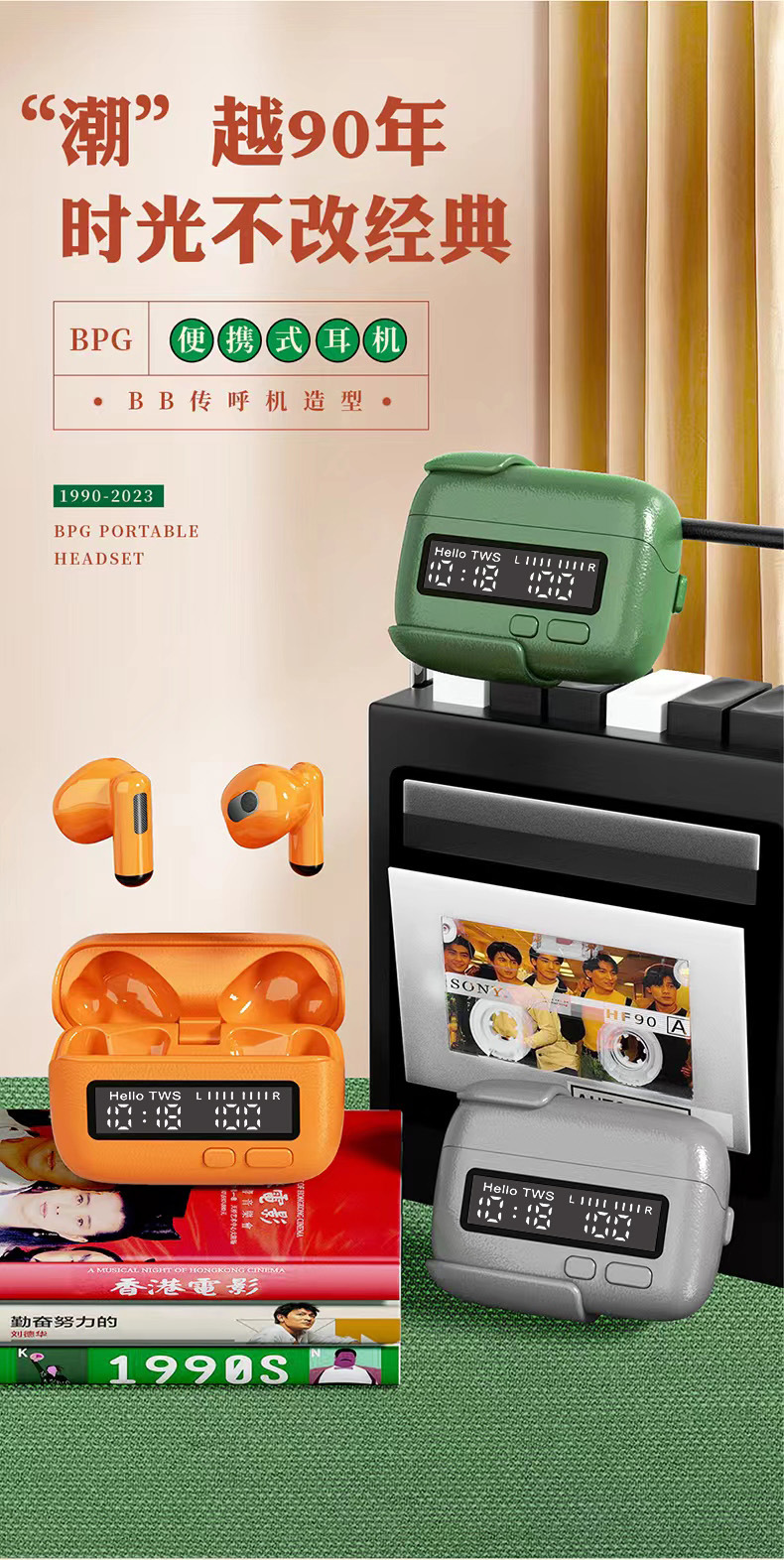 2026新款无线蓝牙耳机Temu跨境电商便携式复古个性化潮流数显时钟