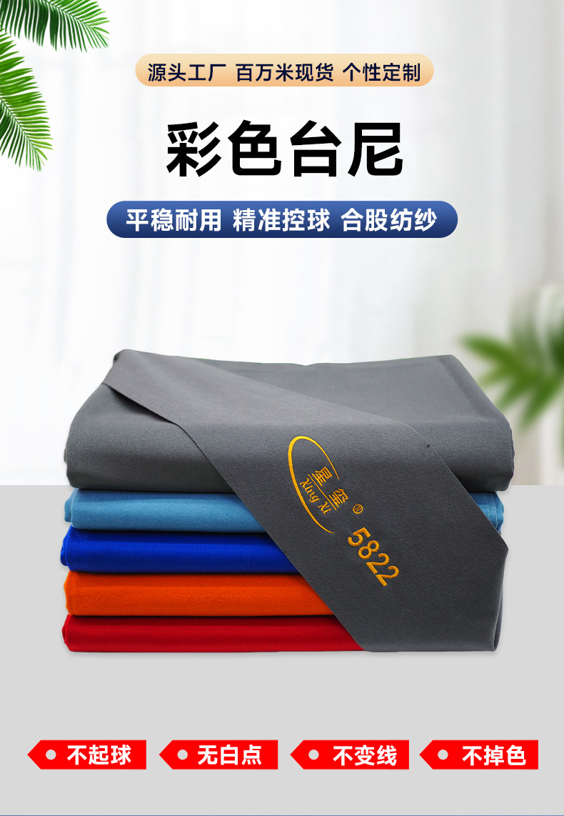 厂家供应 5822彩色星玺台尼 中八黑八九球桌布 多种颜色可选