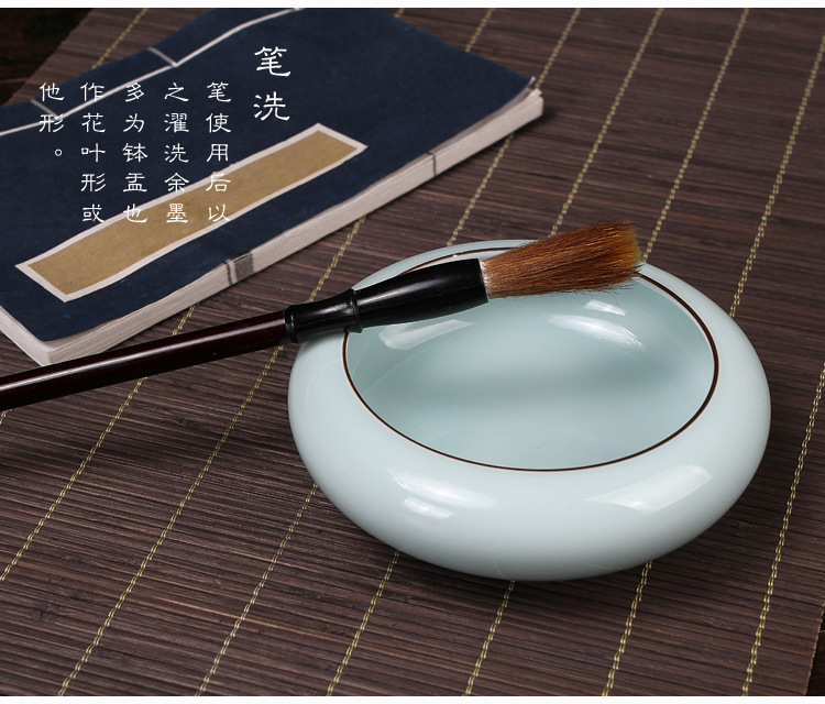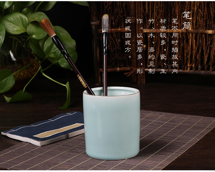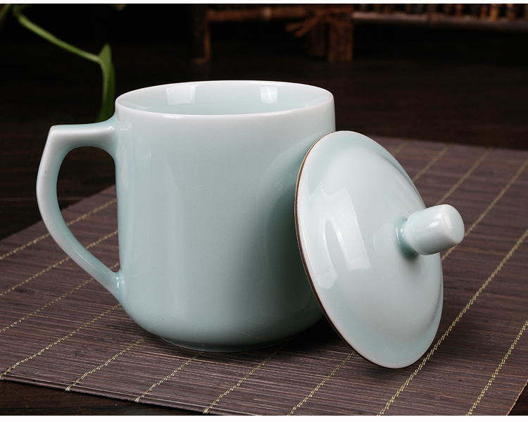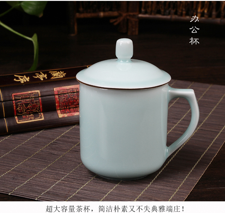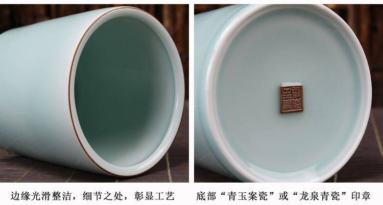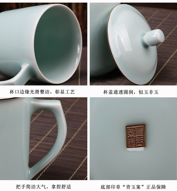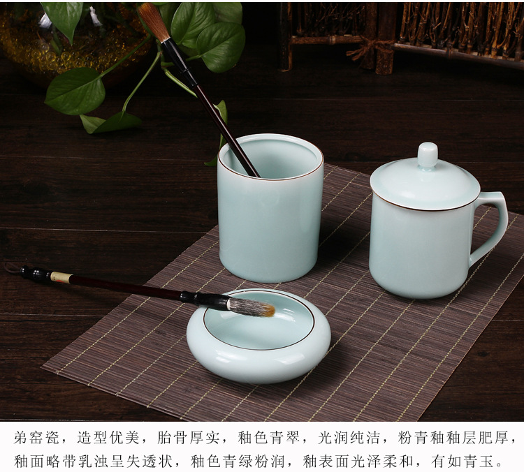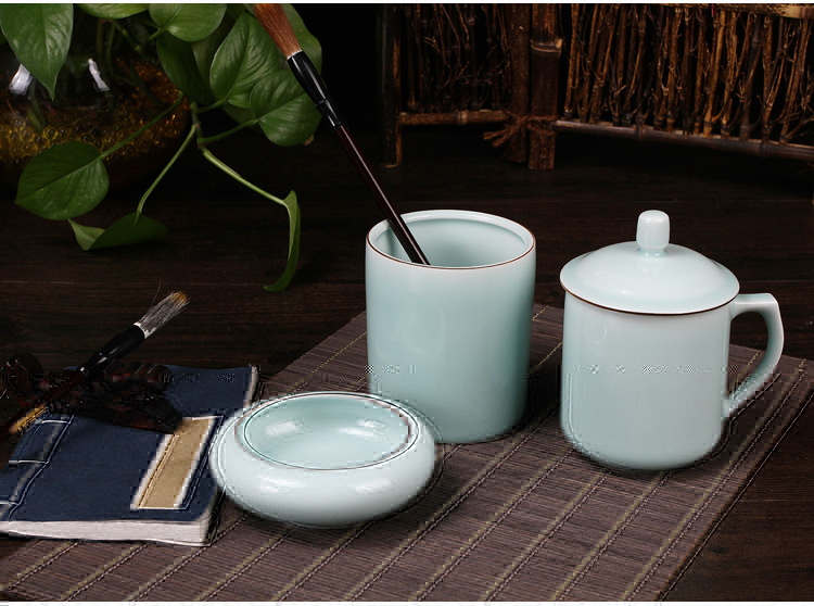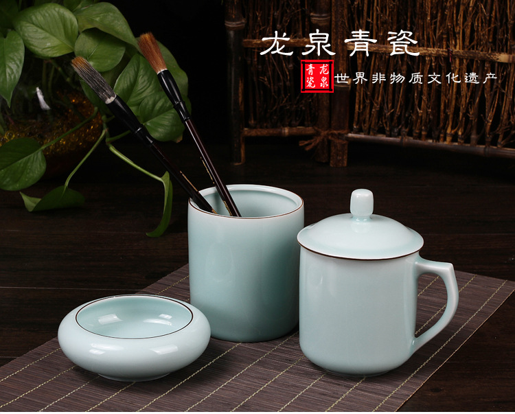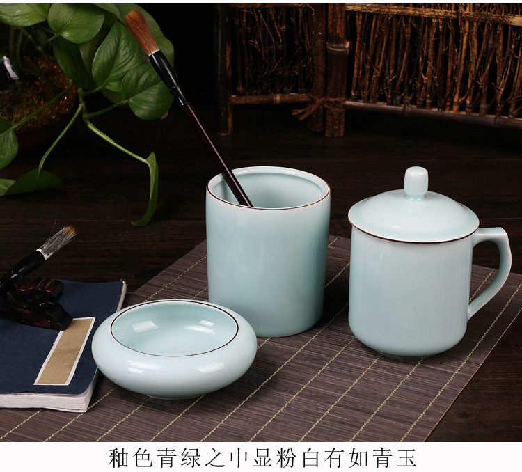 中式陶瓷带盖办公泡茶杯龙泉青瓷茶杯笔筒笔洗三件套茶器伴手礼