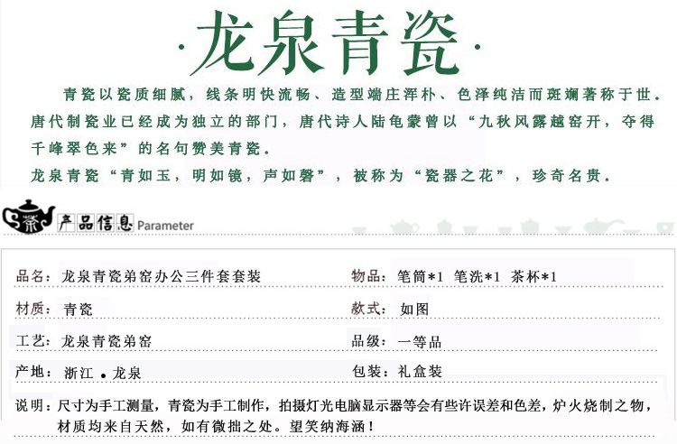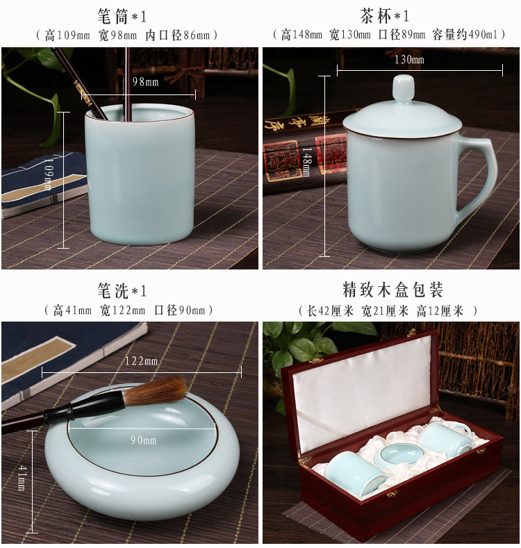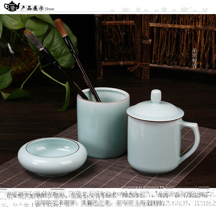 中式陶瓷带盖办公泡茶杯龙泉青瓷茶杯笔筒笔洗三件套茶器伴手礼,批发价,价格:680,厂家直销,中式陶瓷带盖办公泡茶杯龙泉青瓷茶杯笔筒笔洗三件套茶器伴手礼,免费拿样。