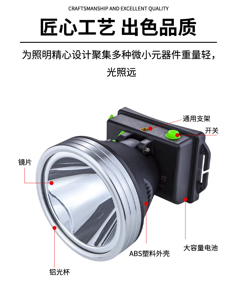 大功率led头灯长续航头戴式户外照明灯 作业钓鱼锂电强光头灯批发