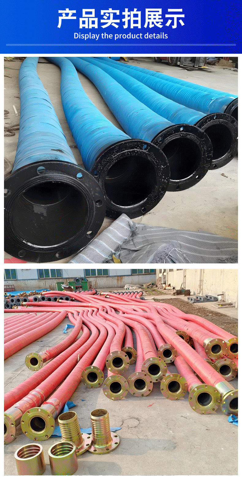 加工大口径橡胶管吸排高压钢丝骨架耐磨输水输油吸砂法兰管定制