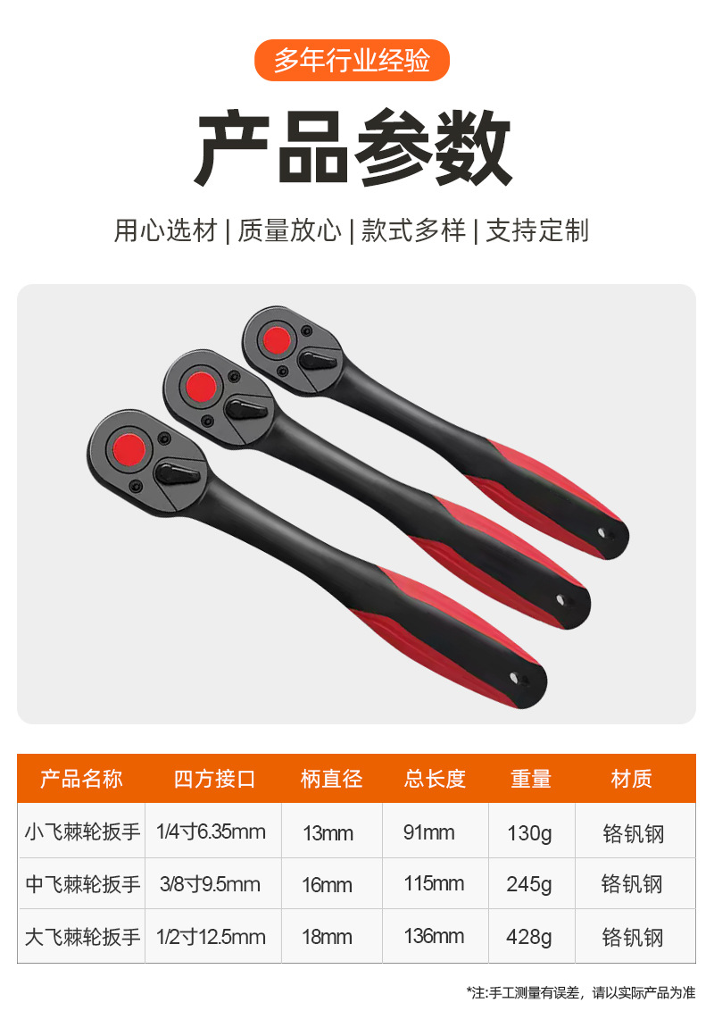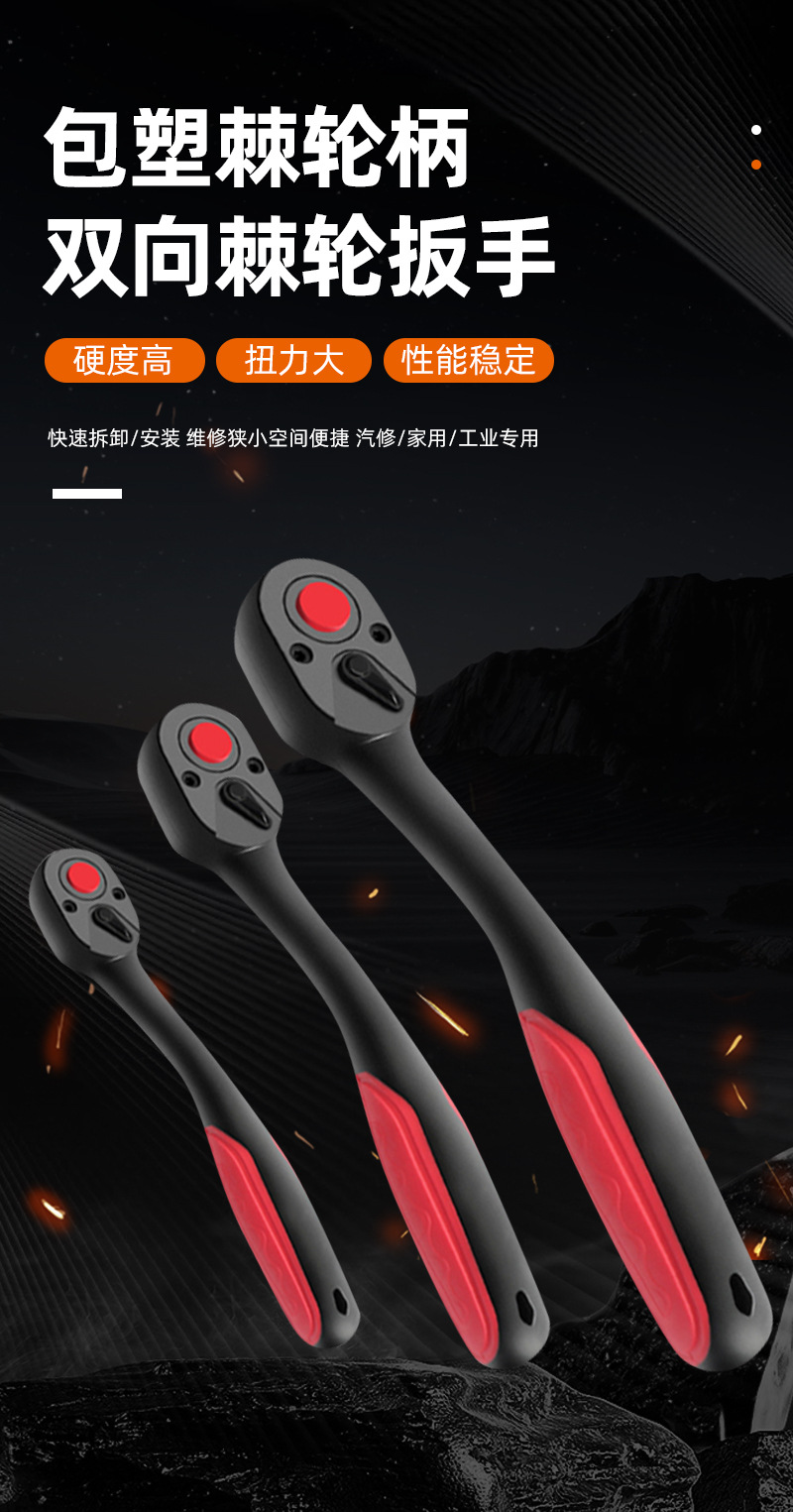 1/2包塑快速套筒棘轮扳手 省力工业大飞中飞小飞双向汽修五金工具