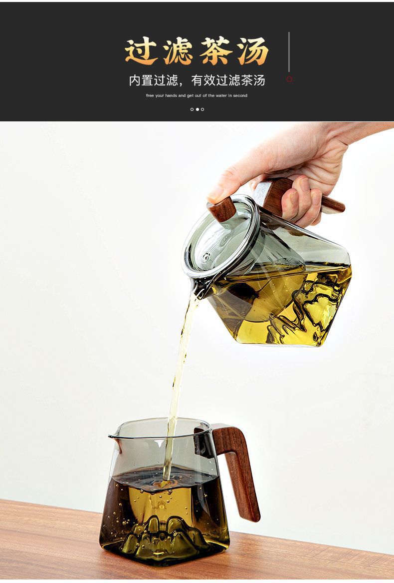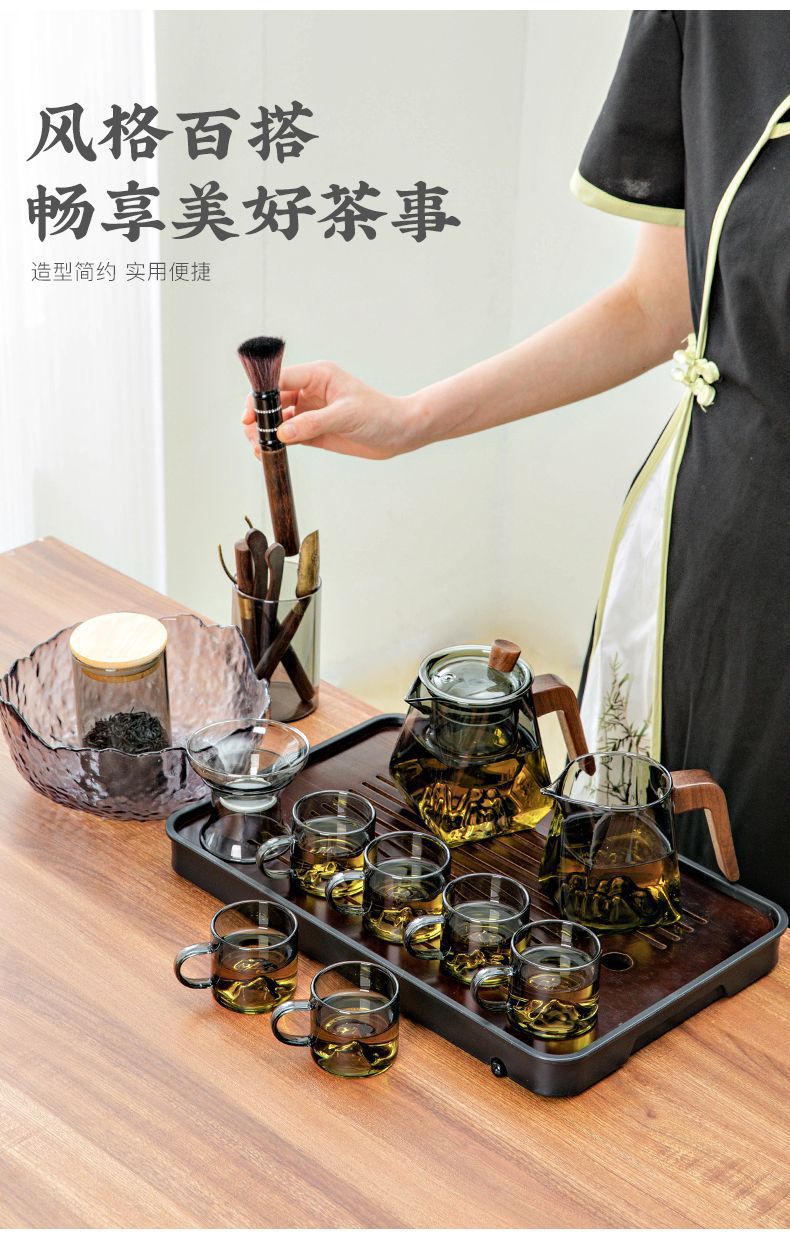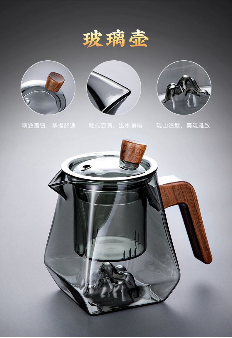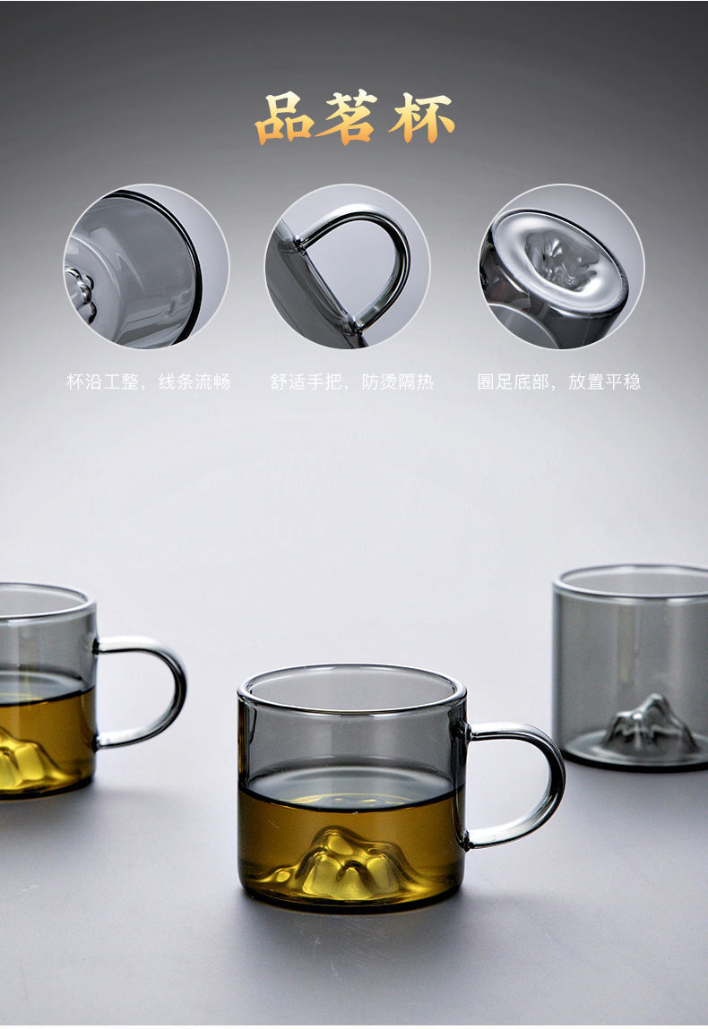 烟灰观山玻璃茶具套装功夫茶杯轻奢高档耐热泡茶壶办公室2024新款