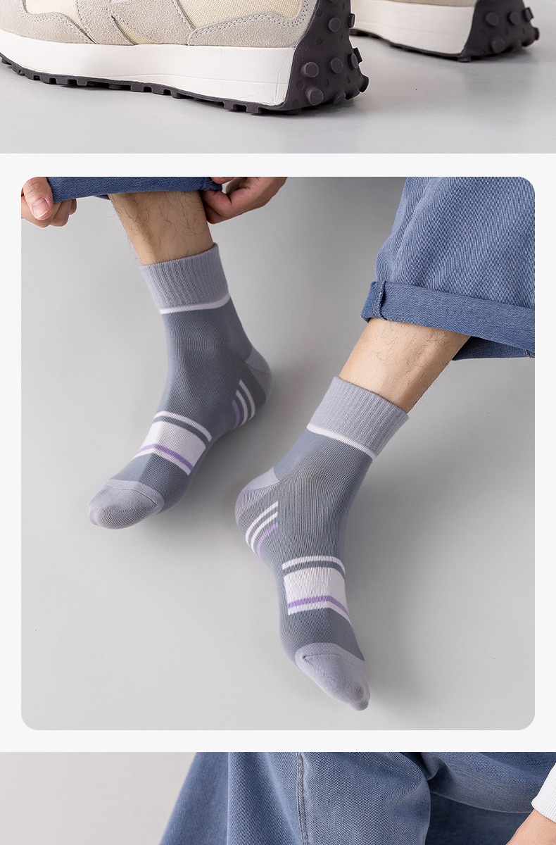 袜子男士春秋季运动款中筒袜吸汗透气条纹袜秋冬季男袜中筒批发