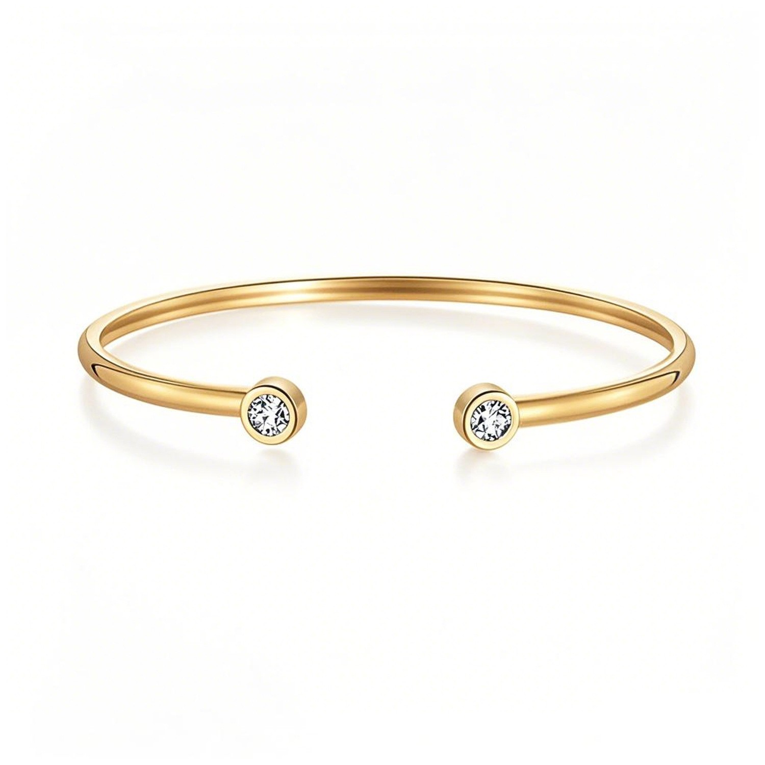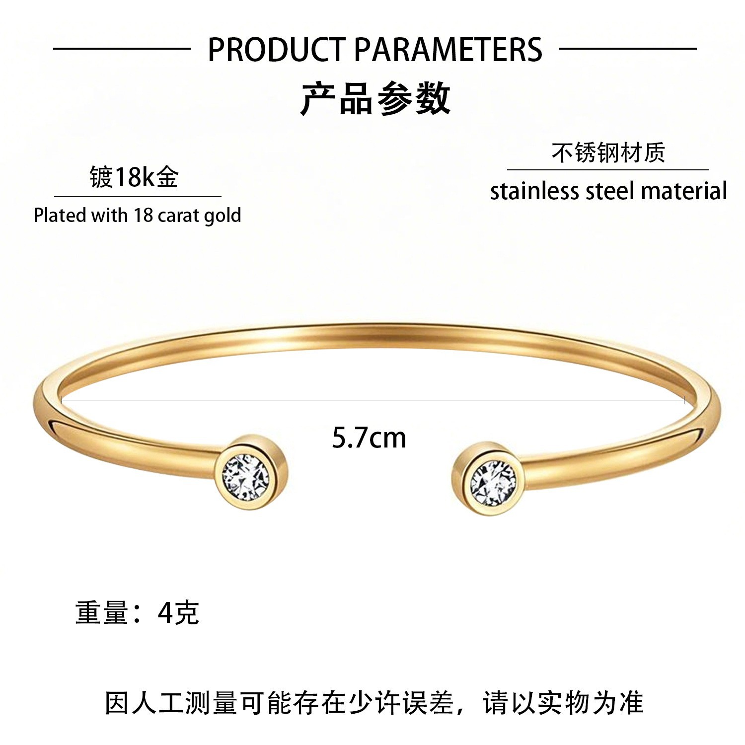 欧美时尚简约方形锆石不锈钢手镯摇摆空心开口可调 电镀18k金手环